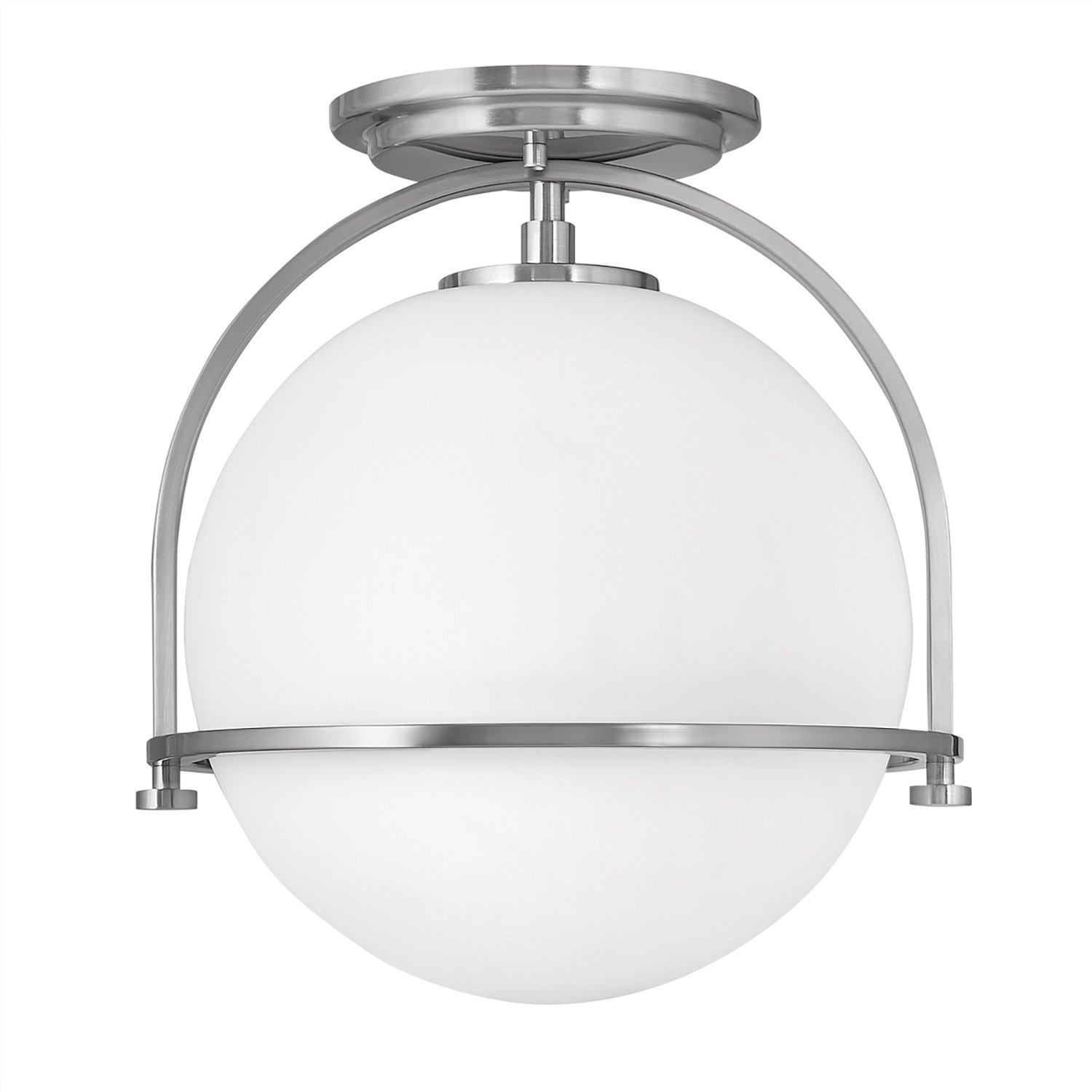 Plafoniera a 1 luce - Nichel. Chic ed elegante, la collezione Somerset emana una raffinatezza tranquilla e precisa. Il vetro opalino acidato o trasparente, che fonde la modernità con il fascino vintage, fluttua abilmente all'interno di una struttura essenziale, mentre i pomelli in metallo tornito aggiungono un tocco di autenticità. Questa collezione di classe è disponibile nelle finiture ottone heritage, nichel spazzolato e nero.