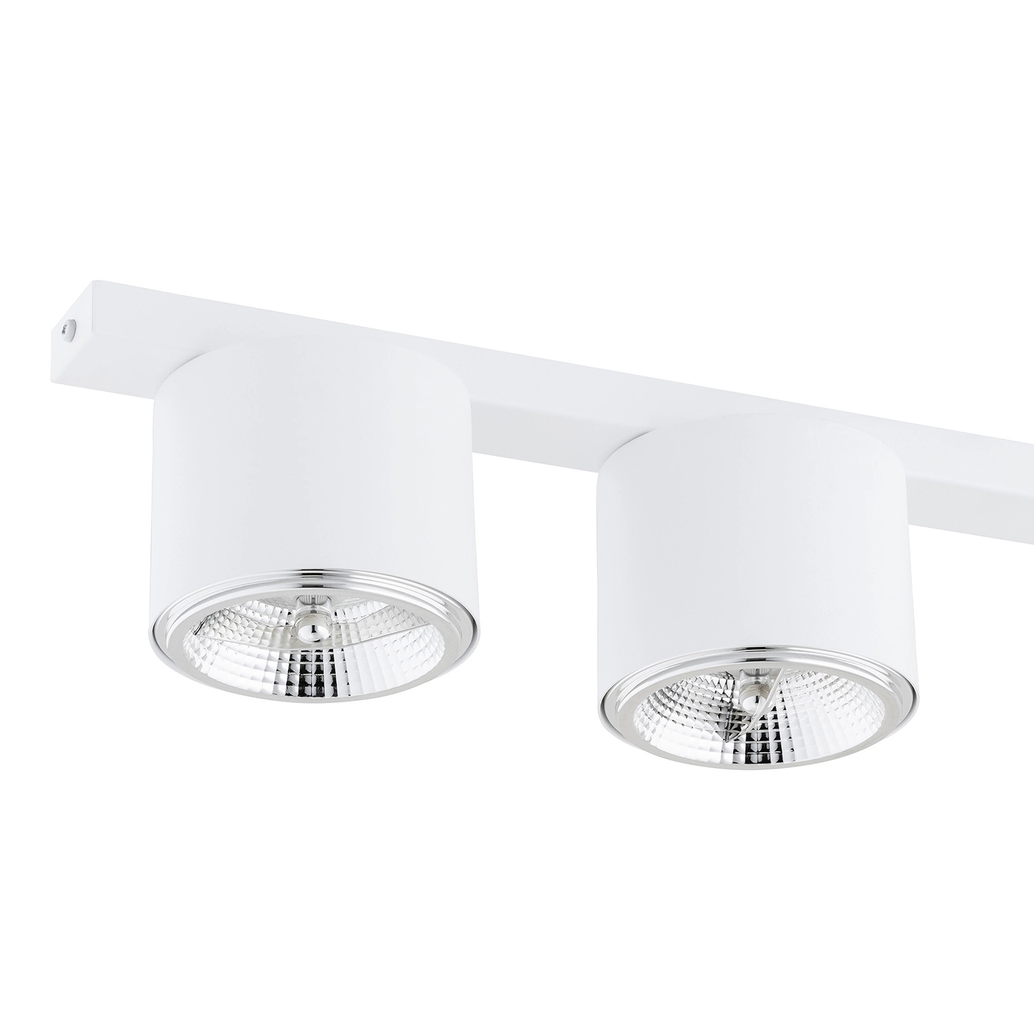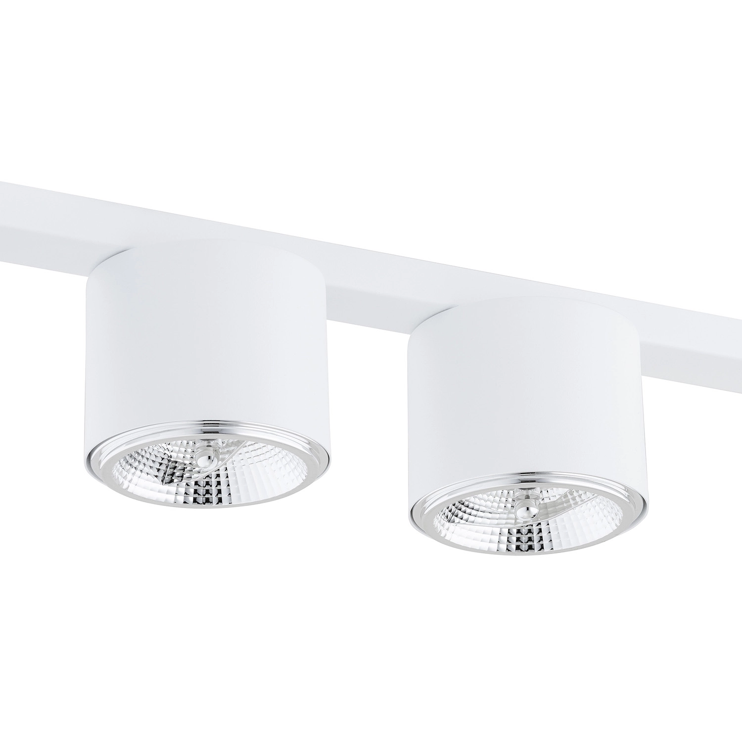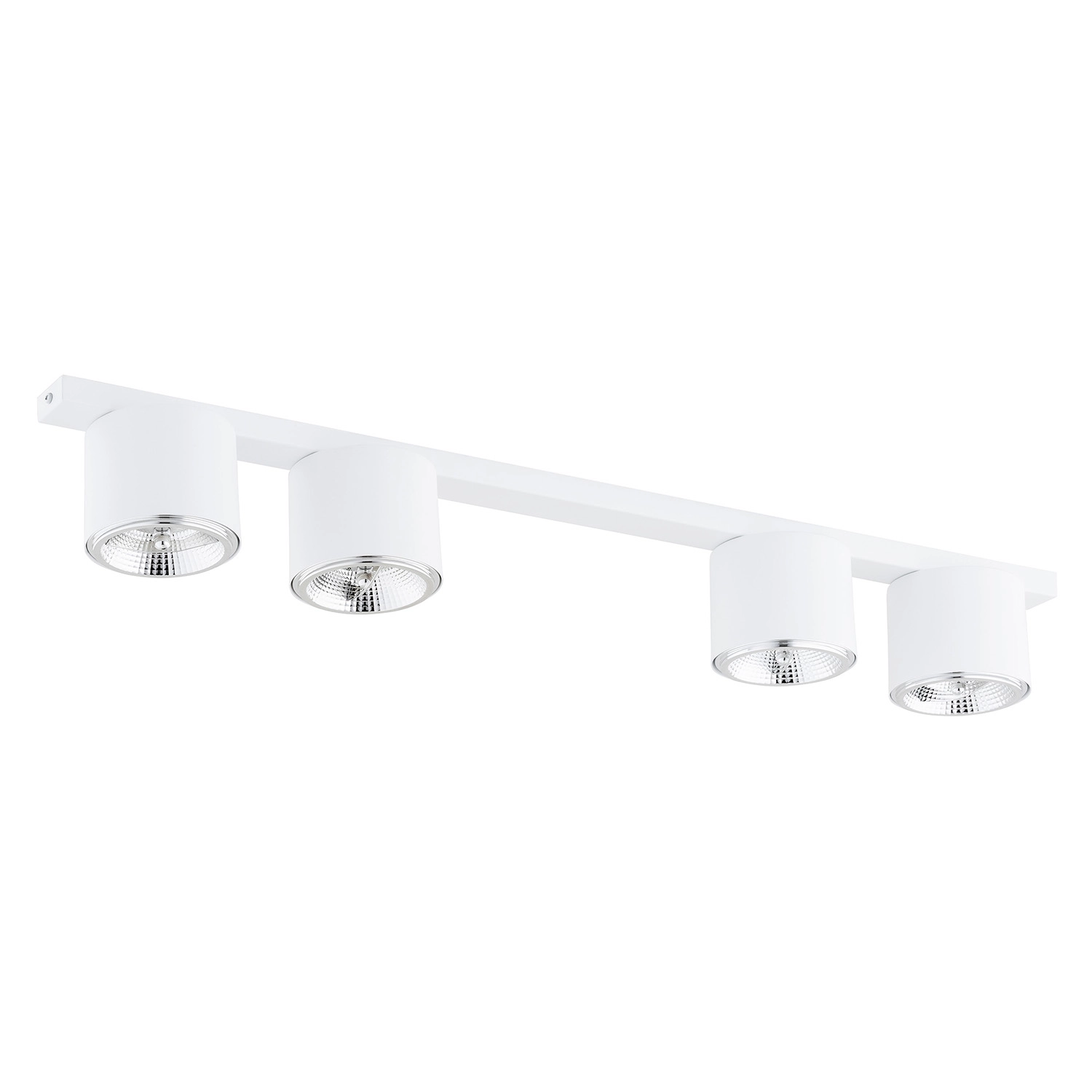 Collezione PtahRENDI LA TUA CASA UN POSTO UNICOPlafoniera 4 luci realizzata con base rettangolare e 3 faretti circolari in acciaio bianco. Con sorgenti luminose foc..