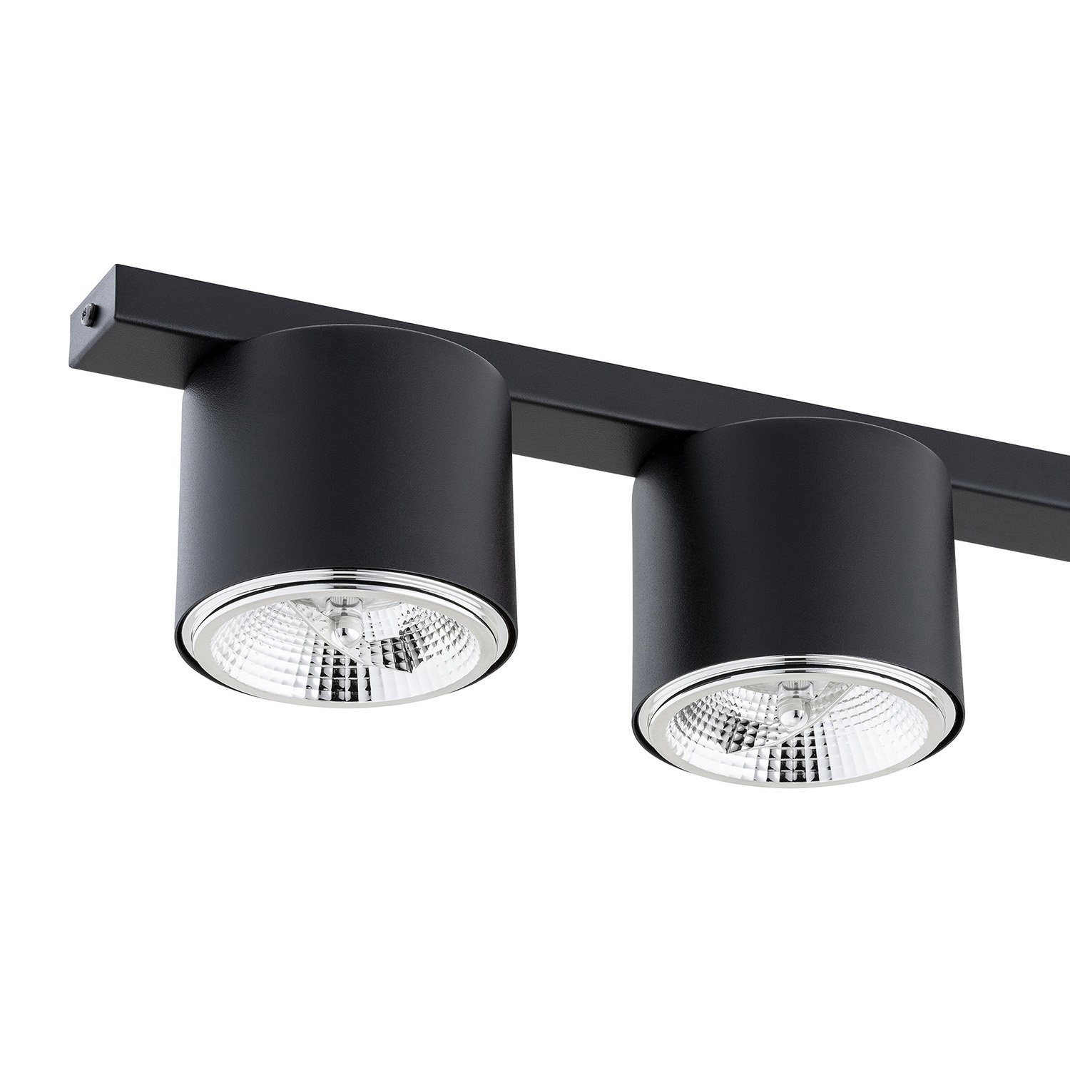 Collezione PtahRENDI LA TUA CASA UN POSTO UNICOPlafoniera 4 luci realizzata con base rettangolare e 3 faretti circolari in acciaio nero. Con sorgenti luminose focal..
