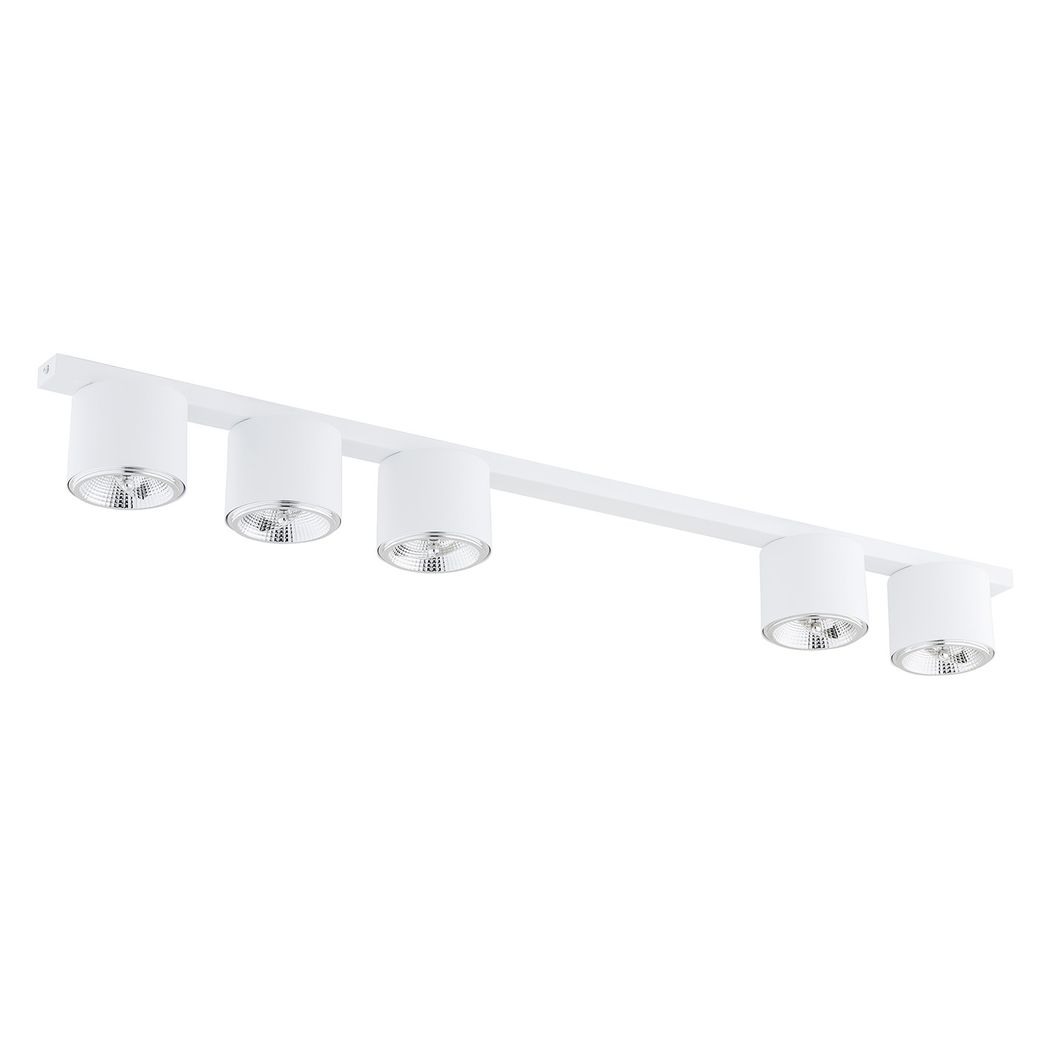 Collezione PtahRENDI LA TUA CASA UN POSTO UNICOPlafoniera 5 luci realizzata con base rettangolare e 3 faretti circolari in acciaio bianco. Con sorgenti luminose foc..