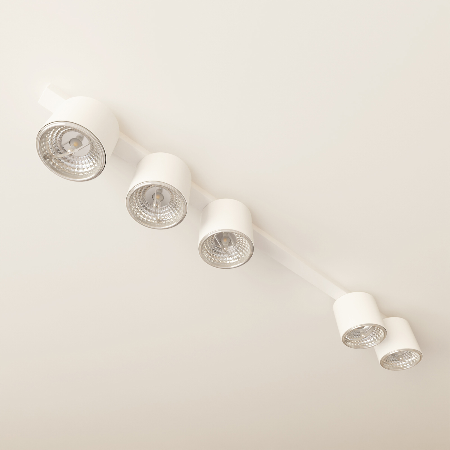Plafoniera Moderna 5 Luci Faretti Ptah In Acciaio Bianco