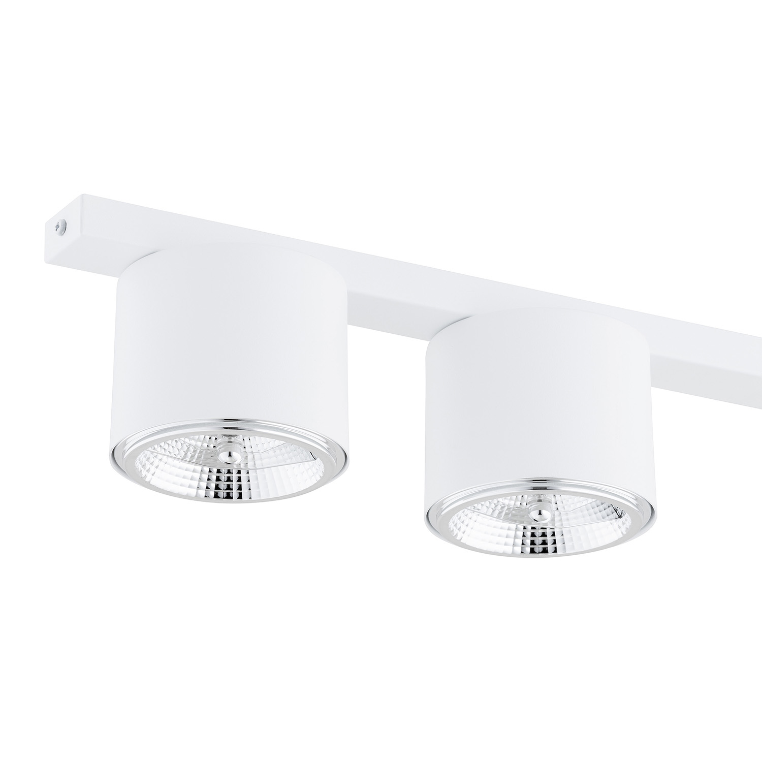 Collezione PtahRENDI LA TUA CASA UN POSTO UNICOPlafoniera 4 luci realizzata con base rettangolare e 3 faretti circolari in acciaio bianco. Con sorgenti luminose foc..