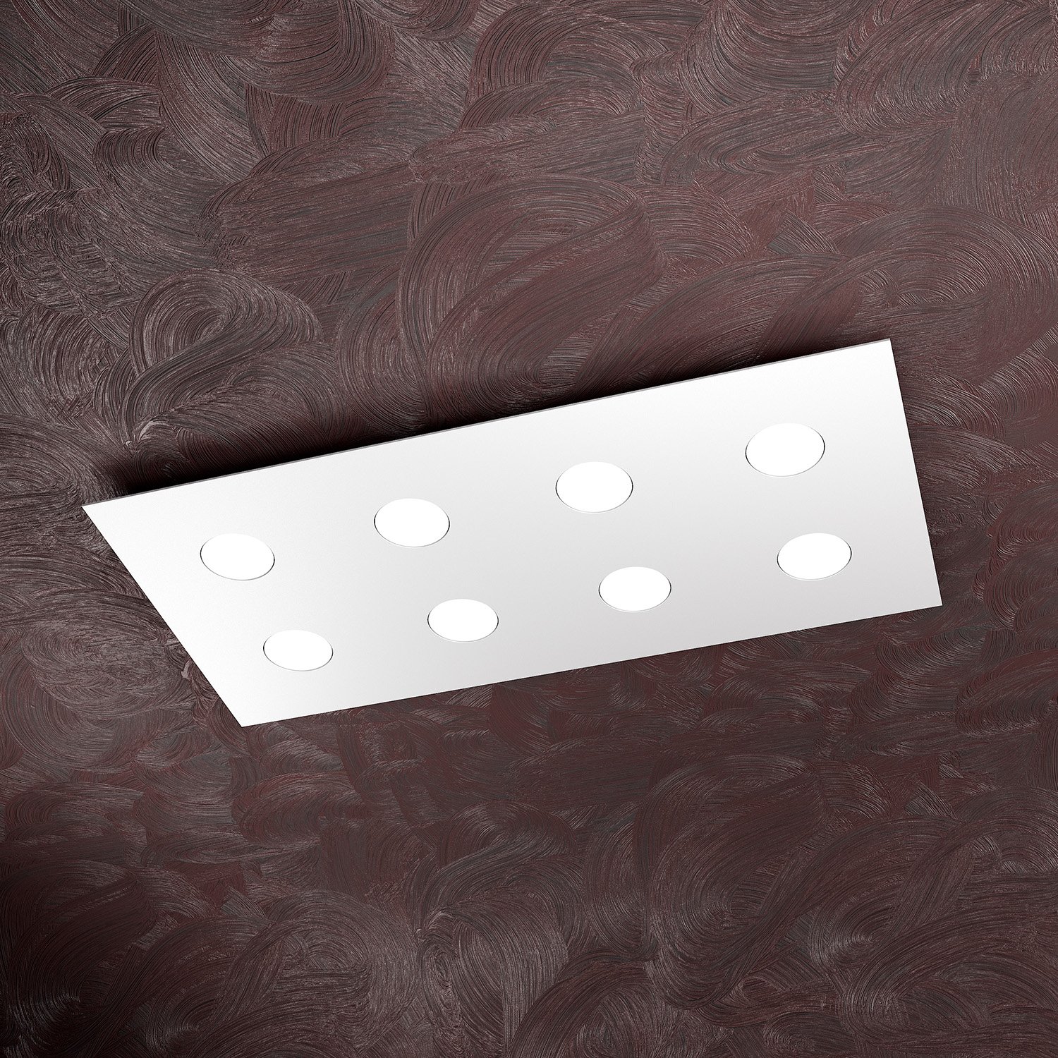 Plafoniera 8 luci realizzata con lastre quadrate in metallo verniciato in finitura bianca di forma rettangolare.. Il punto di forza del prodotto consiste nel non utilizzare dei led integrati ma una lampadina Gx53 che, una volta montata, arriva a filo della lastra metallica e può essere facilmente sostituita dall’esterno. Questo articolo è disponibile in diverse finiture e/o dimensioni. E' possibile indicarlo nell'apposito campo NOTE presente in conclusione di ordine oppure contattarci dopo aver effettuato l'ordine.