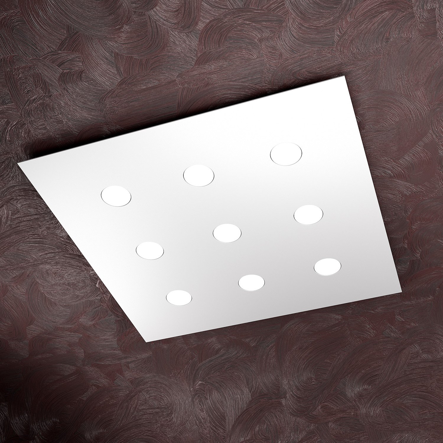 Collezione AREAIL FASCINO MINIMALISTA DELL'ILLUMINAZIONE SENZA LAMPADINEPlafoniera 9 luci realizzata con lastre quadrate in metallo verniciato in finitura sabbia di ..