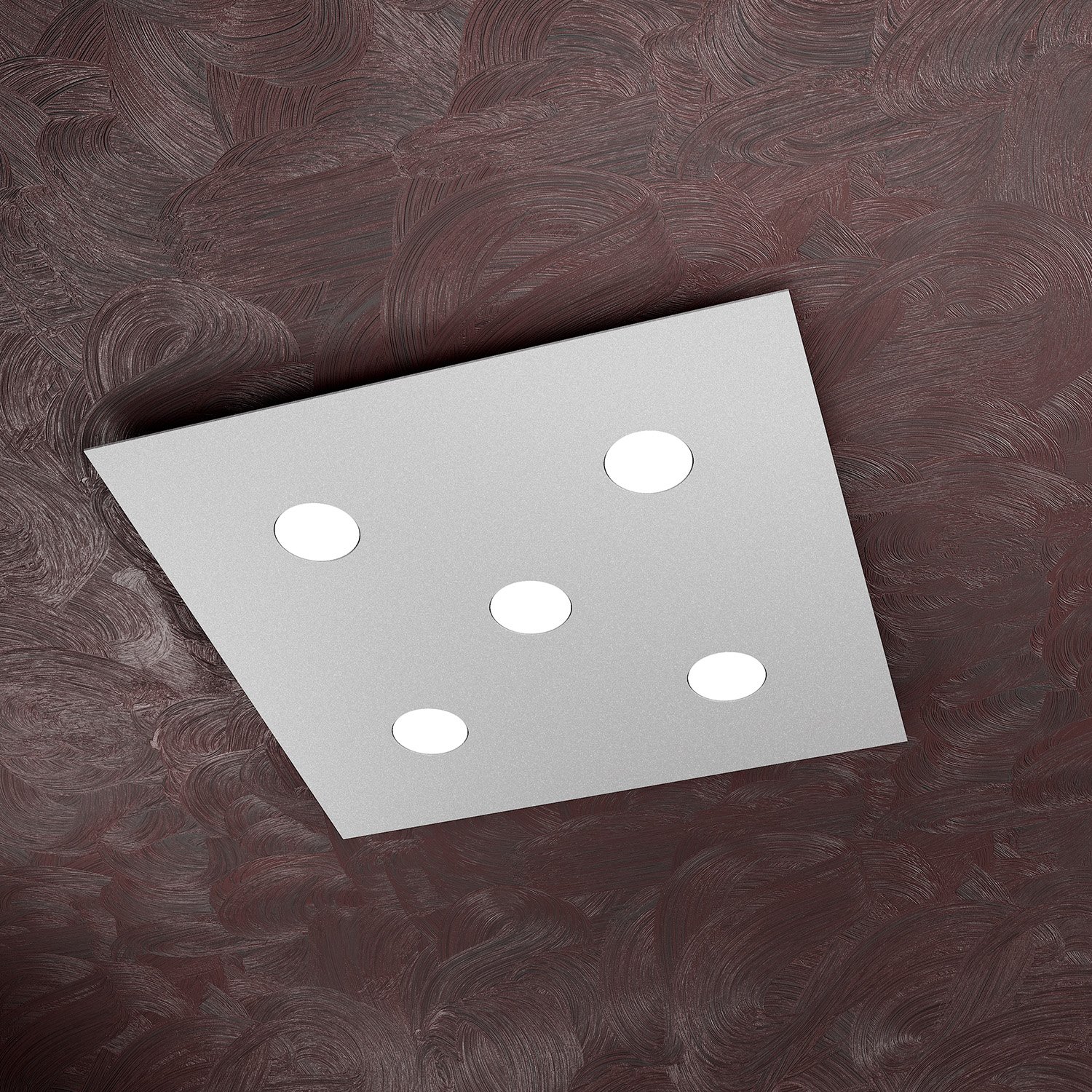 Collezione AREAIL FASCINO MINIMALISTA DELL'ILLUMINAZIONE SENZA LAMPADINEPlafoniera 5 luci realizzata con lastre quadrate in metallo verniciato in finitura sabbia di ..