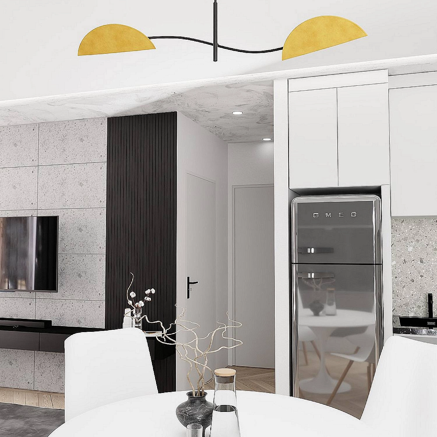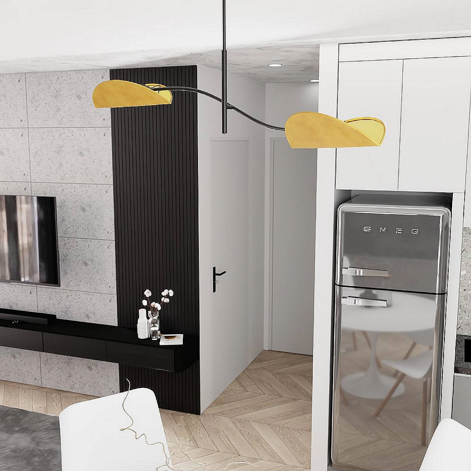 Sospensione Nordica 2 Luci Ares In Acciaio Nero Oro Bracci Regolabili