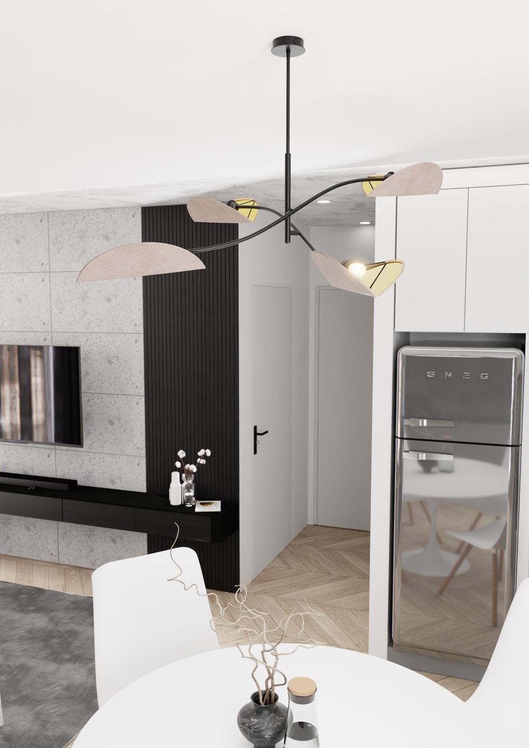 Sospensione Nordica 2 Luci Ares In Acciaio Nero Bianco E Oro Bracci Regolabili