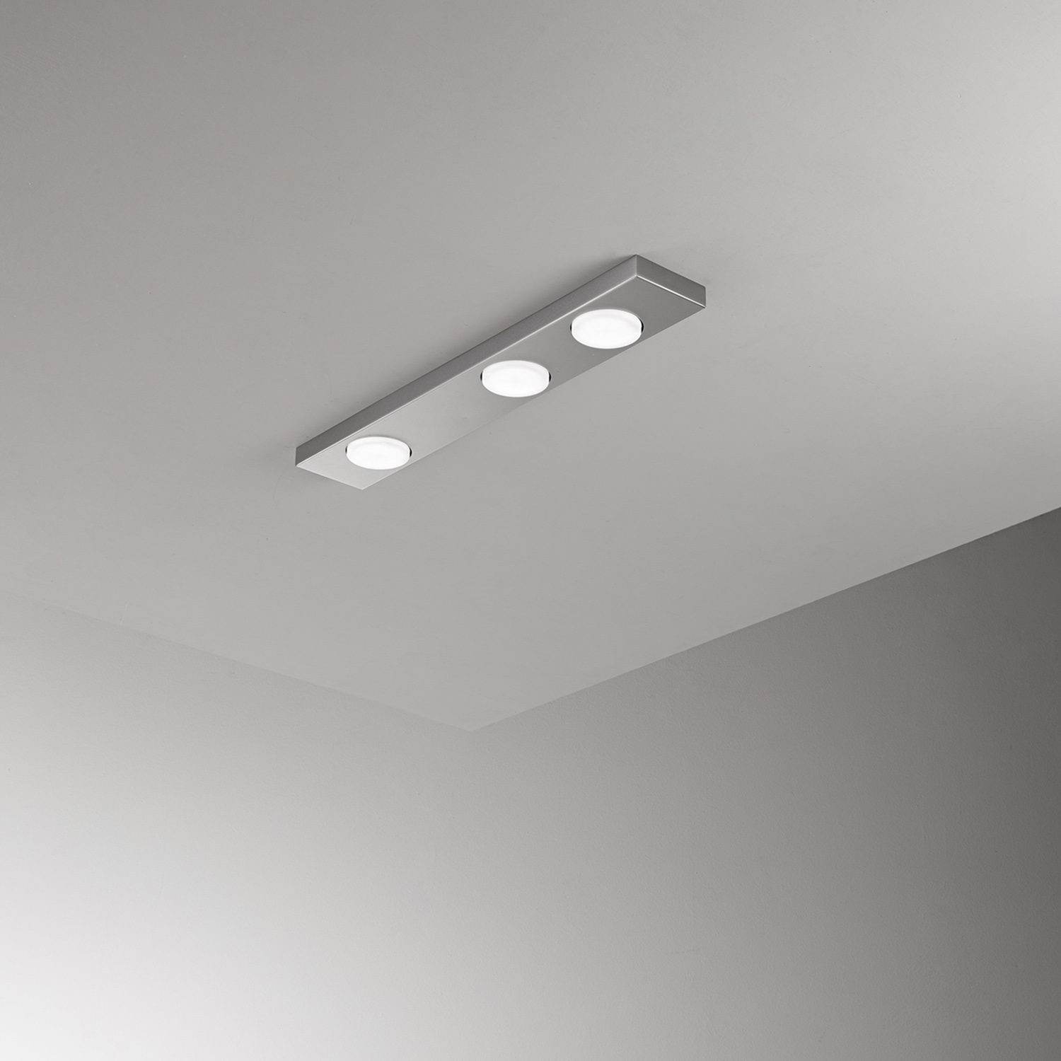 Collezione con struttura in metallo e alluminio verniciato a polvere nei vari colori. Colore: alluminio opaco L.60 x L.10 cm 3 x GX53 MAX 15W 220-240V 50/60Hz IP20 - Classe I