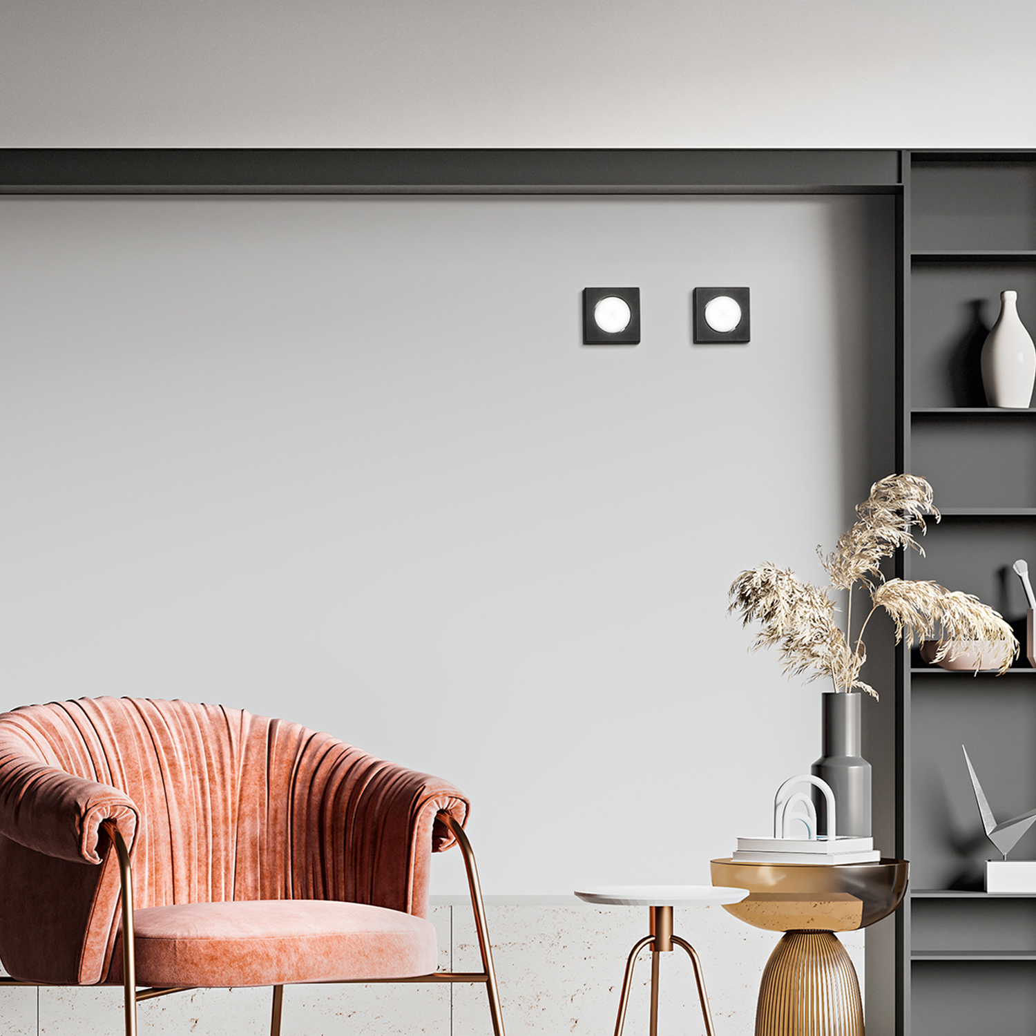Collezione BottoneCOMPATTA E FUNZIONALECollezione con struttura in metallo e alluminio verniciato a polvere nei vari colori. Colore: bianco opaco L11,5 x L.11,5 cm 1..