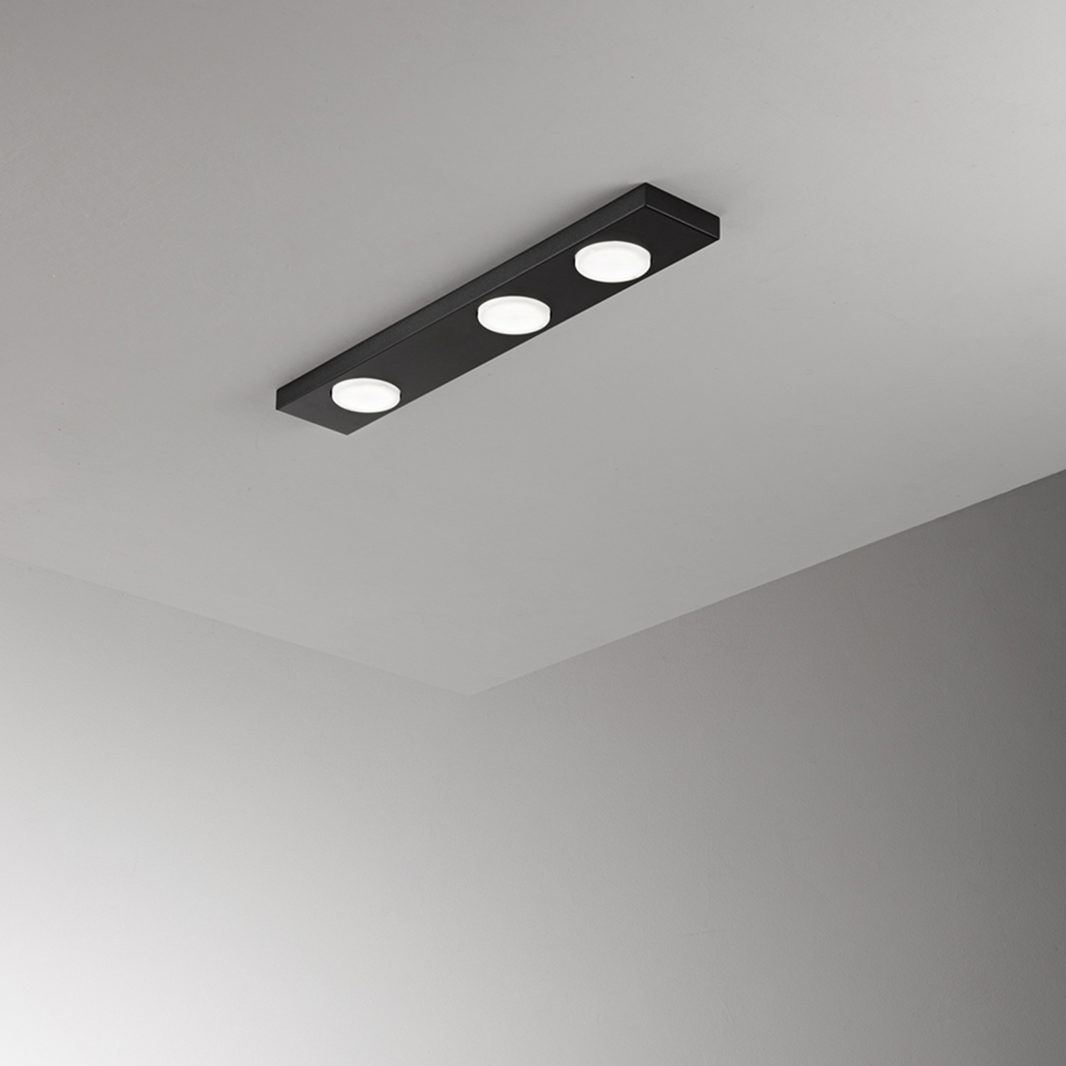 Collezione con struttura in metallo e alluminio verniciato a polvere nei vari colori. Colore: nero opaco L.60 x L.10 cm 3 x GX53 MAX 15W 220-240V 50/60Hz IP20 - Classe I
