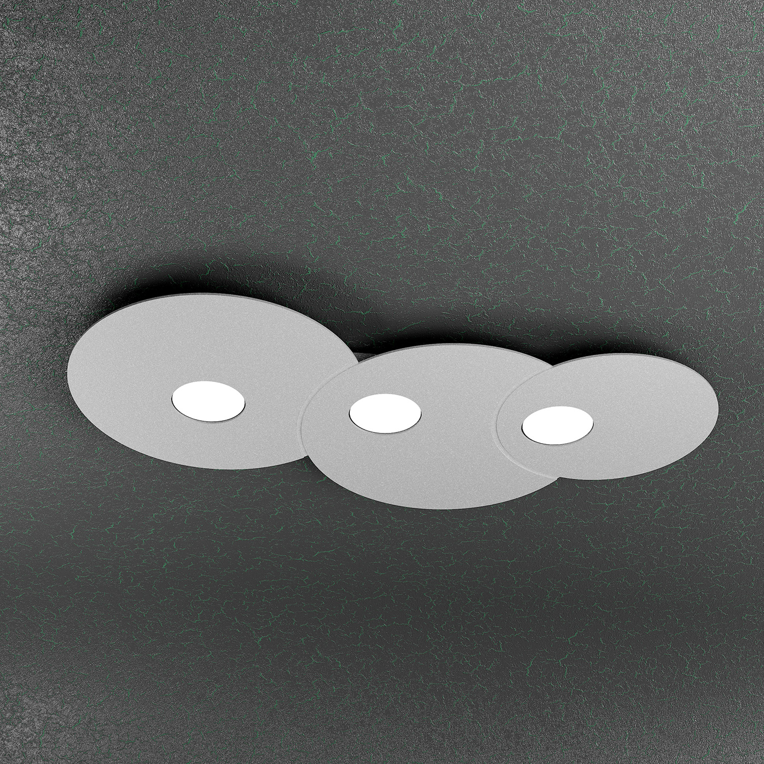 Plafoniera di finitura grigia con lastre quadrate di metallo con lavorazioni di fresatura che creano giochi di cerchi sovrapposti.. Il punto di forza del prodotto consiste nel non utilizzare dei led integrati ma una lampadina Gx53 che, una volta montata, arriva a filo della lastra metallica e può essere facilmente sostituita dall’esterno.Questo articolo è disponibile in diverse finiture e/o dimensioni. E' possibile indicarlo nell'apposito campo NOTE presente in conclusione di ordine oppure contattarci dopo aver effettuato l'ordine.