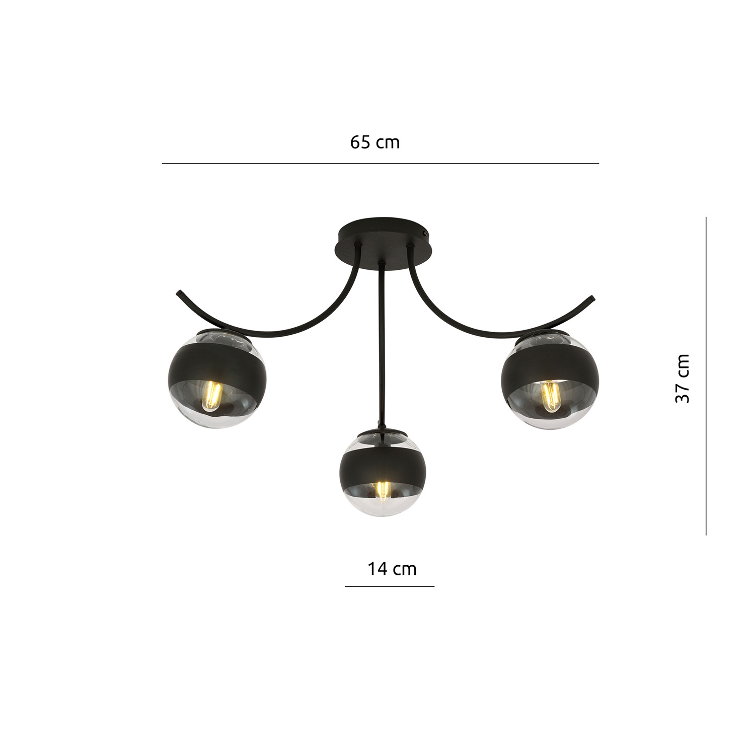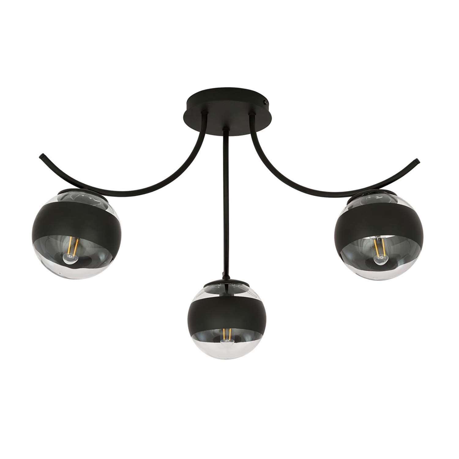 Plafoniera Moderna 3 Luci Coeo In Acciaio Nero E Diffusori In Vetro Fumè
