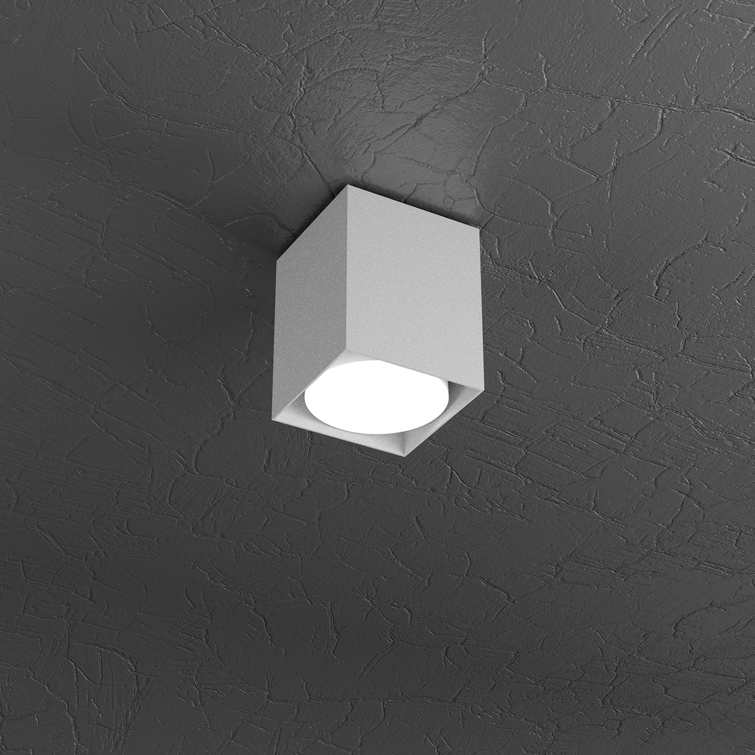 Plafoniera Moderna Cubica Plate Metallo Grigio 1 Luce Gx53 10Cm