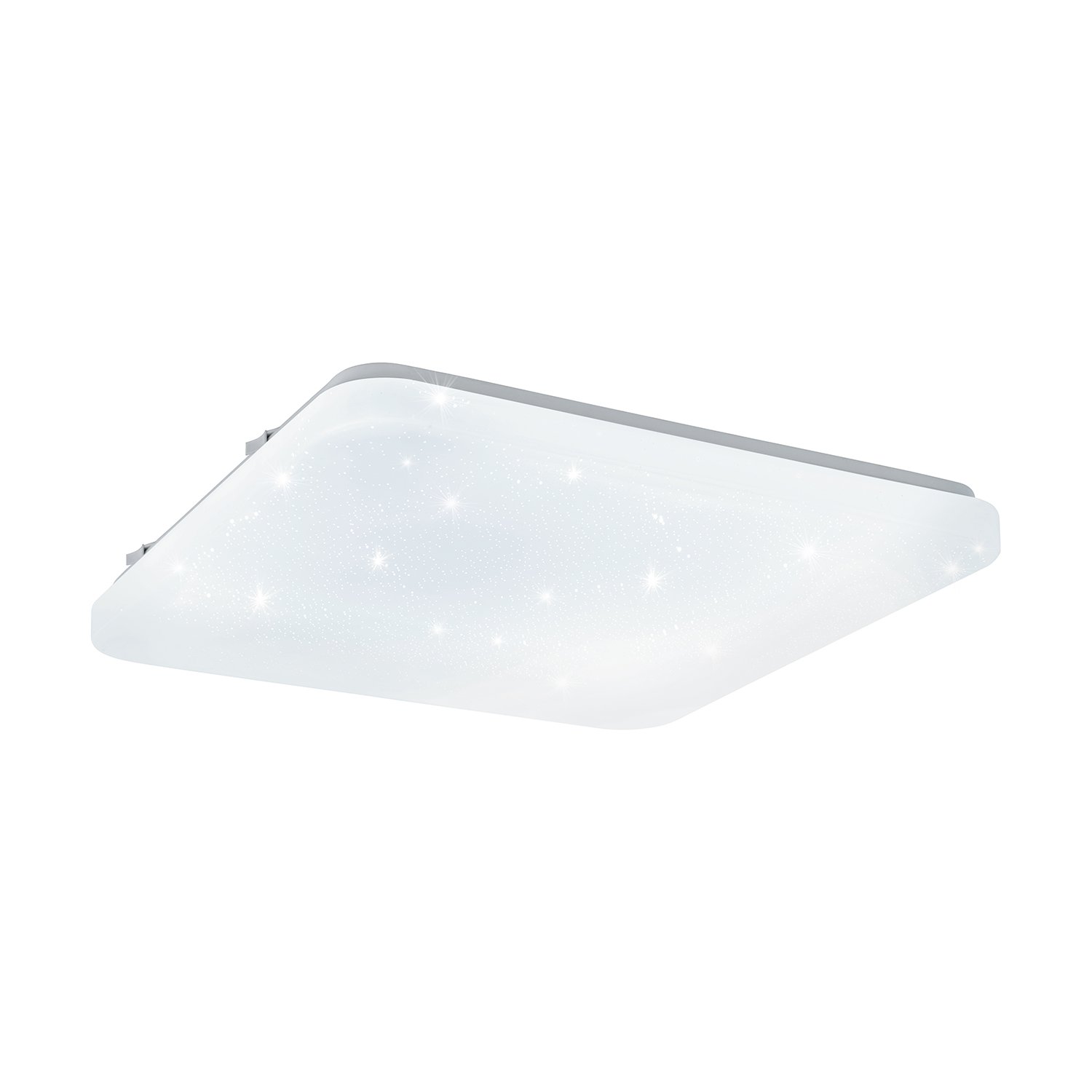 La plafoniera a LED FRANIA-S è composta da una superficie luminosa quadrata, in plastica con angoli arrotondati e da una parte posteriore bianca in metallo.. La copertura crea un’immagine scintillante quando la lampada è accesa, come se fosse un cielo stellato. I LED integrati emanano una luce bianca piacevolmente calda. Questo plafone, con una grandezza di 33 x 33 cm, offre un’illuminazione gradevole e si armonizza in modo ideale con ambienti dall’arredamento moderno come ad esempio cucina, soggiorno, camera da letto, corridoio o camera dei bambini.