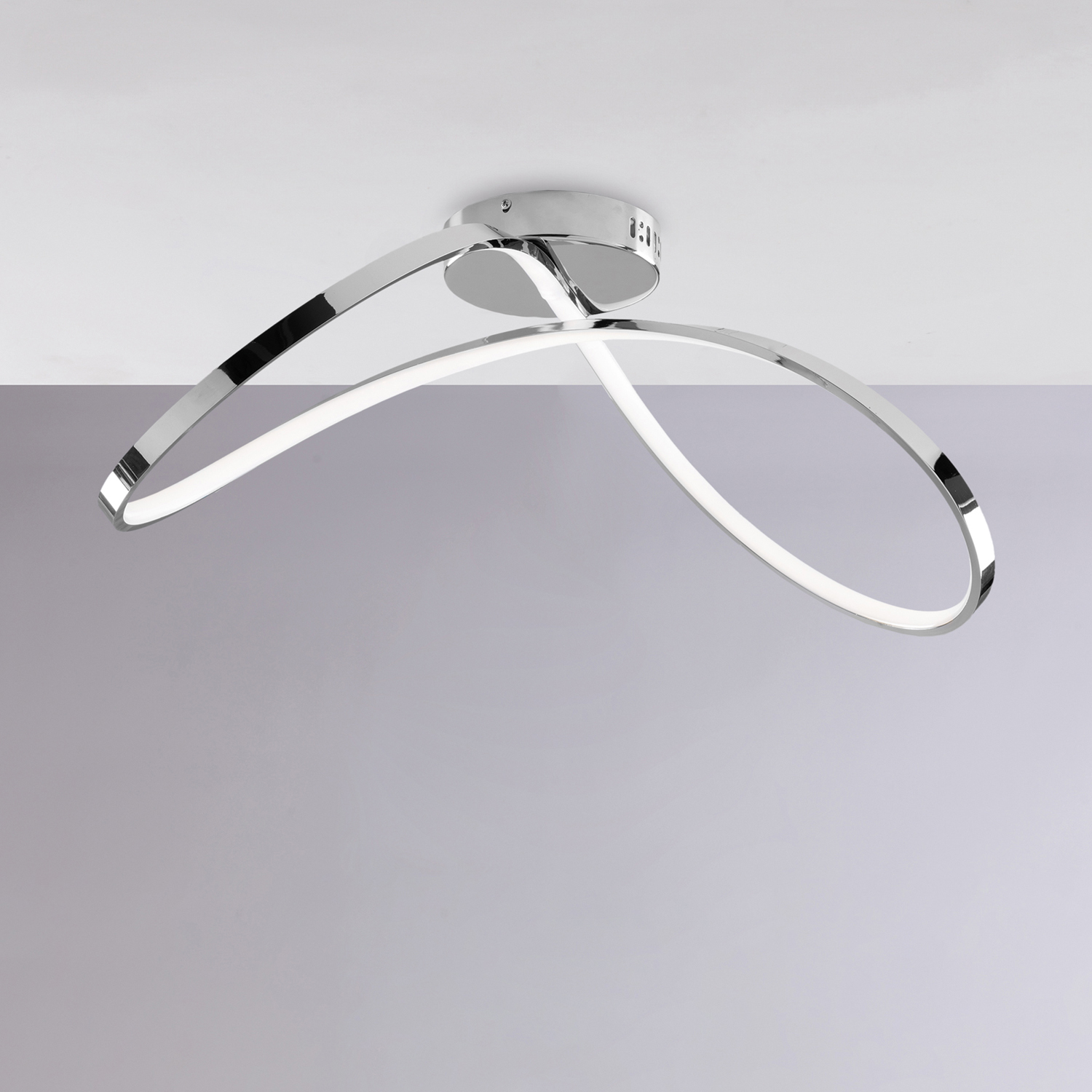 Plafoniera moderna in metallo e alluminio cromo lucido con led integrato e diffusore in gomma opale.. Ispirata al simbolo dell'infinito questa serie rappresenta la scelta ideale per chi ama un design minimal senza rinunciare alle tendenze del momento. Leggerezza e brio sono le parole d'ordine di questa serie.
