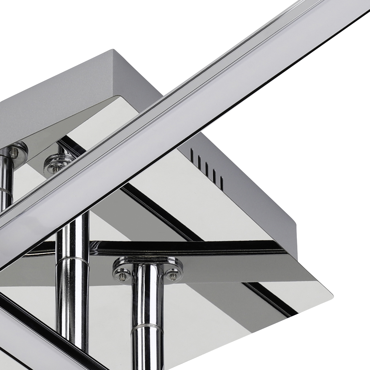 Collezione LASANALA LUCE CHE ESALTA IL TUO ARREDAMENTOLa plafoniera a LED LASANA 1 è realizzata in metallo color cromo con quattro profili a LED diritti incastrati l..