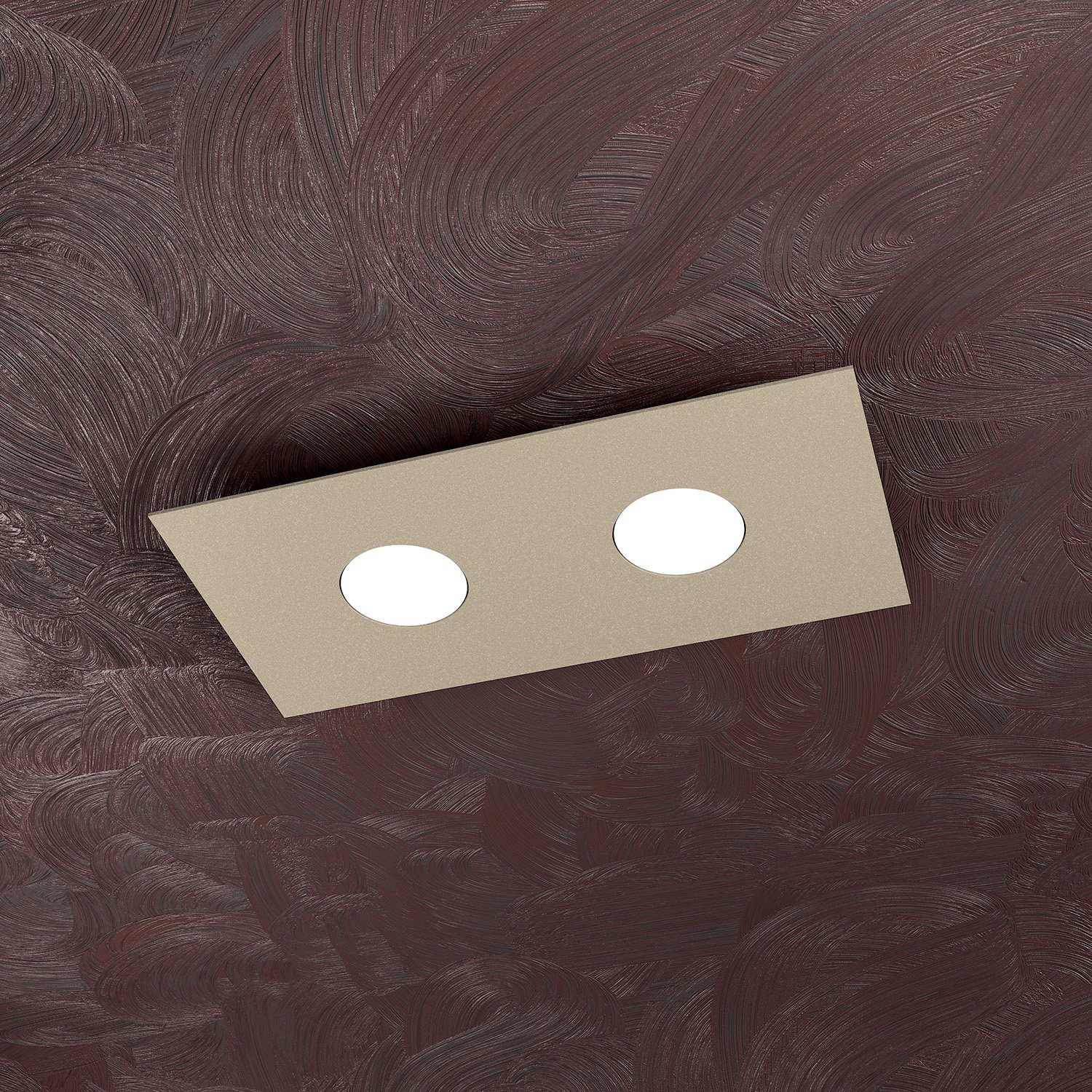 Collezione AREAIL FASCINO MINIMALISTA DELL'ILLUMINAZIONE SENZA LAMPADINEPlafoniera 2 luci realizzata con lastre quadrate in metallo verniciato in finitura sabbia di ..