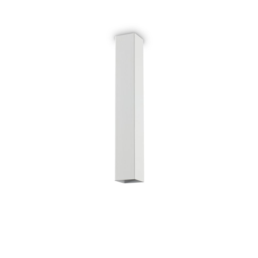 Plafoniera a tubo quadrato h.40 cm 6x6 cm. Corpo luce diffusore in metallo verniciato a polveri con finitura bianca.. Sistema di fissaggio senza viti a vista. Lampadine LED GU10 5W 3000 K incluse. Disponibile in diverse misure e finiture.