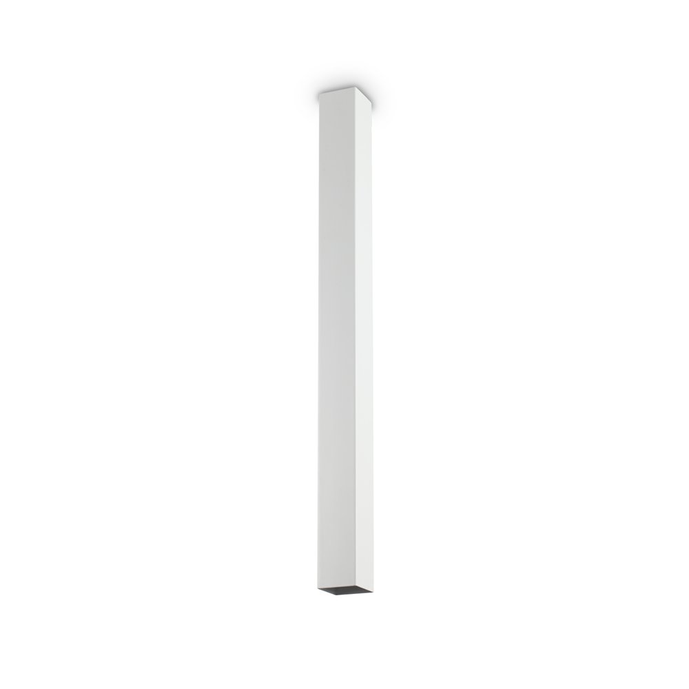 Plafoniera a tubo quadrato h.75 cm 6x6 cm. Corpo luce diffusore in metallo verniciato a polveri con finitura bianca.. Sistema di fissaggio senza viti a vista. Lampadine LED GU10 5W 3000 K incluse. Disponibile in diverse misure e finiture.