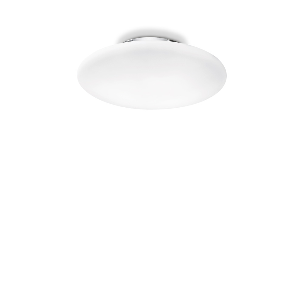 Collezione SMARTIESVETRO BIANCO SOFFIATO PER LAMPADE MODERNEPlafoniera a 1 luce con montatura in metallo. Diffusore in vetro bianco soffiato e acidato....