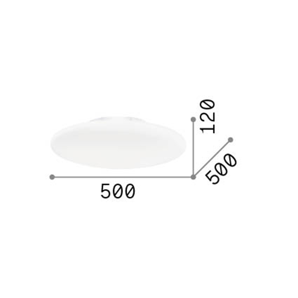 Collezione SMARTIESVETRO BIANCO SOFFIATO PER LAMPADE MODERNEPlafoniera a 3 luci con montatura in metallo. Diffusore in vetro bianco soffiato e acidato, diametro 50 c..