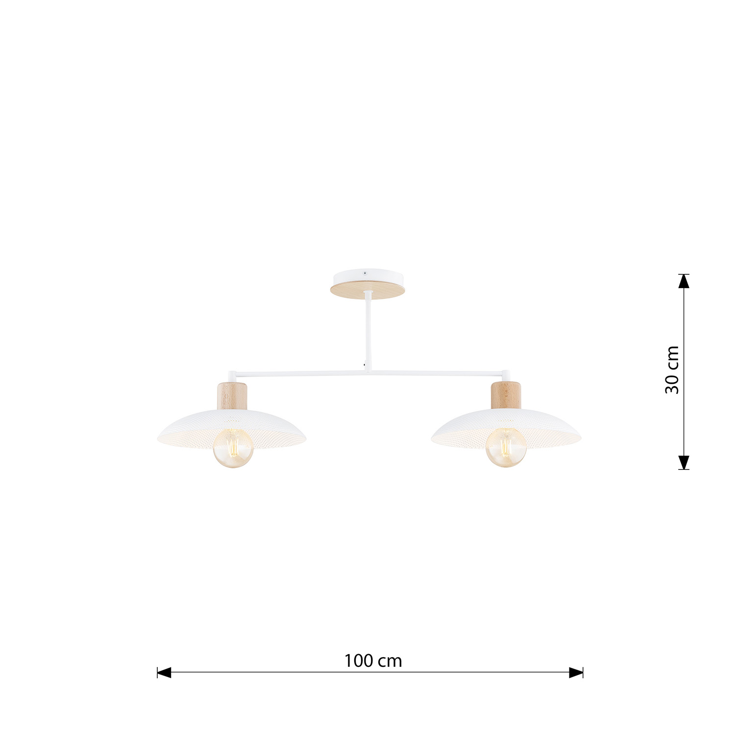 Plafoniera nordica Ishtar 2 luci in legno e acciaio bianco emibig 1319/2
