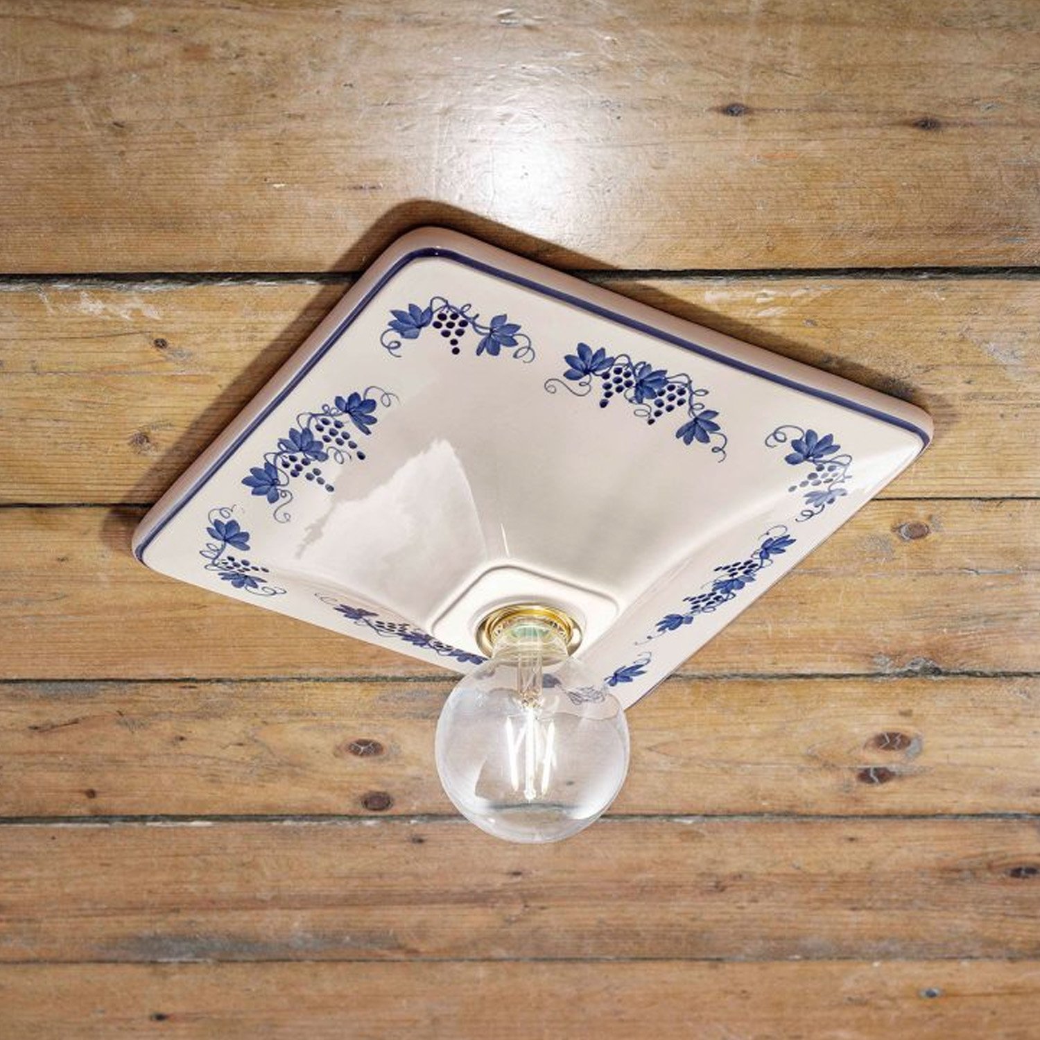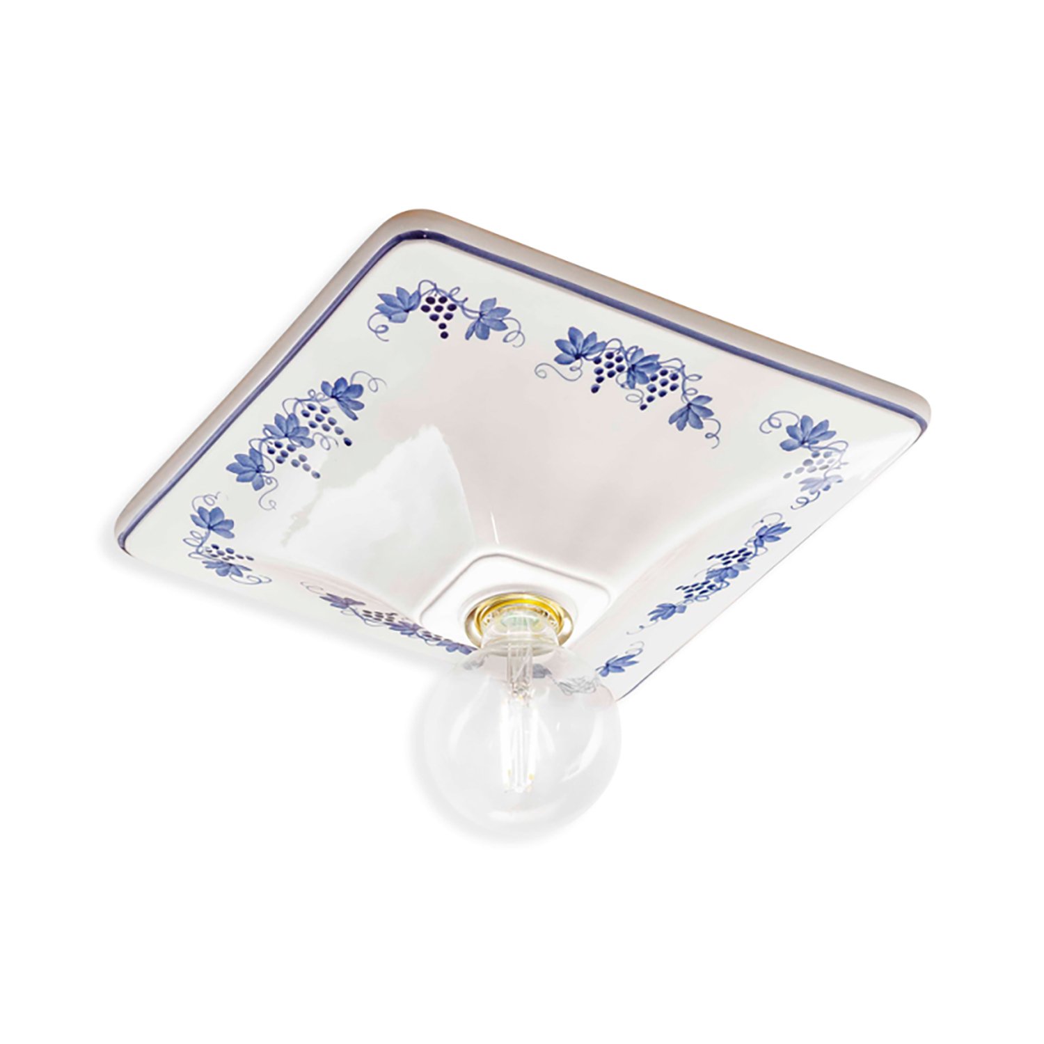 Plafoniera Quadrata Classica Trieste Bianco Decorato Filo Blu 1 Luce E27