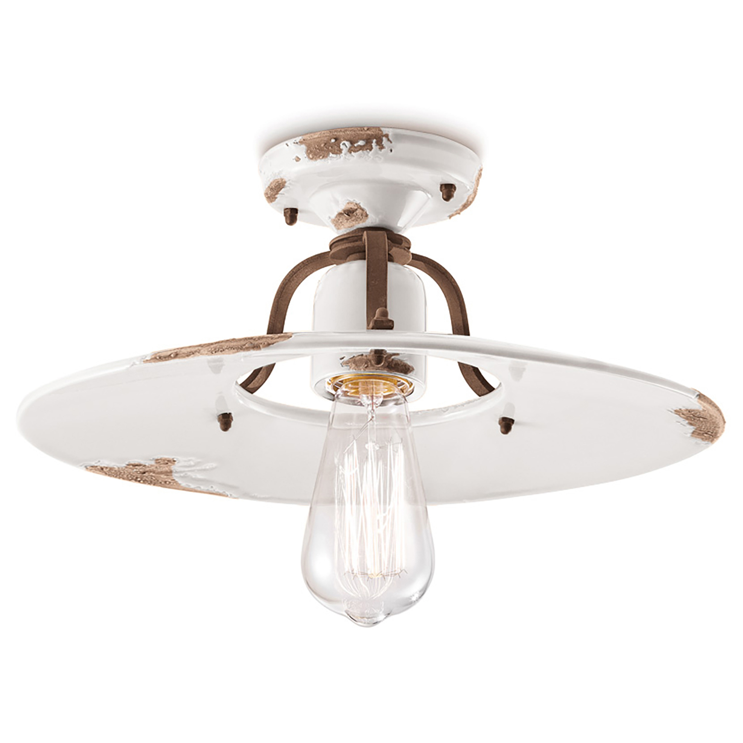 Plafoniera Vintage Country Ferro E Ceramica Bianco 1 Luce E27
