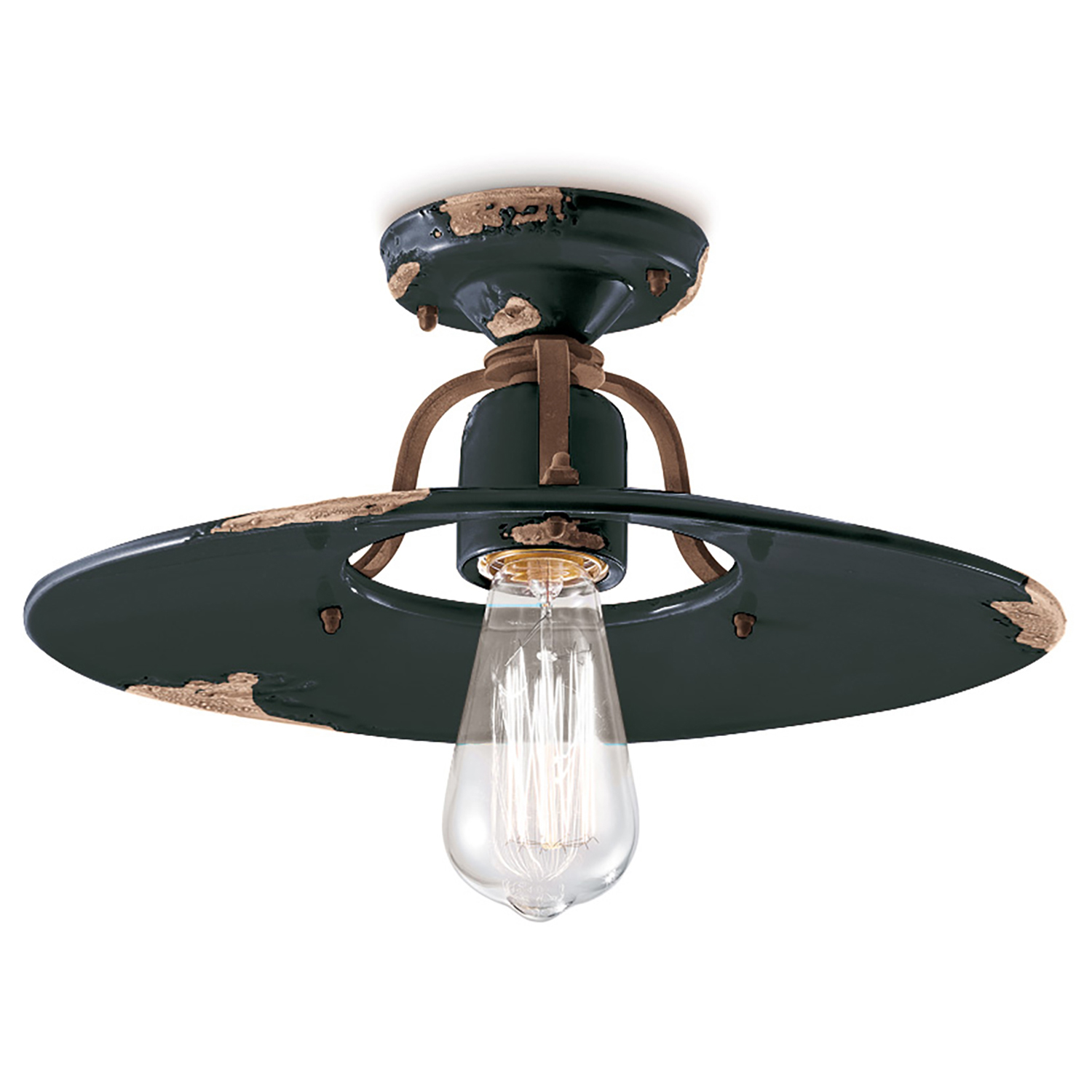 Collezione COUNTRYL'ARMONIA TRA IL VISSUTO ED IL NUOVOPlafoniera 1 Luce diam.40 cm in ceramica con finitura vintage nero scrupolosamente lavorata a mano da artigiani..