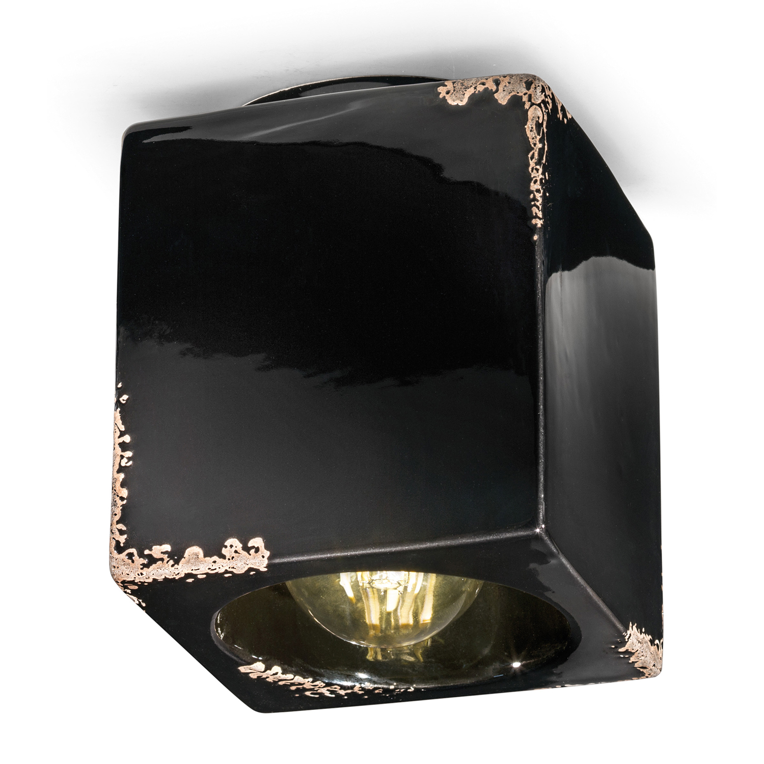 Plafoniera Vintage Cubica Ceramica Nera 1 Luce E27