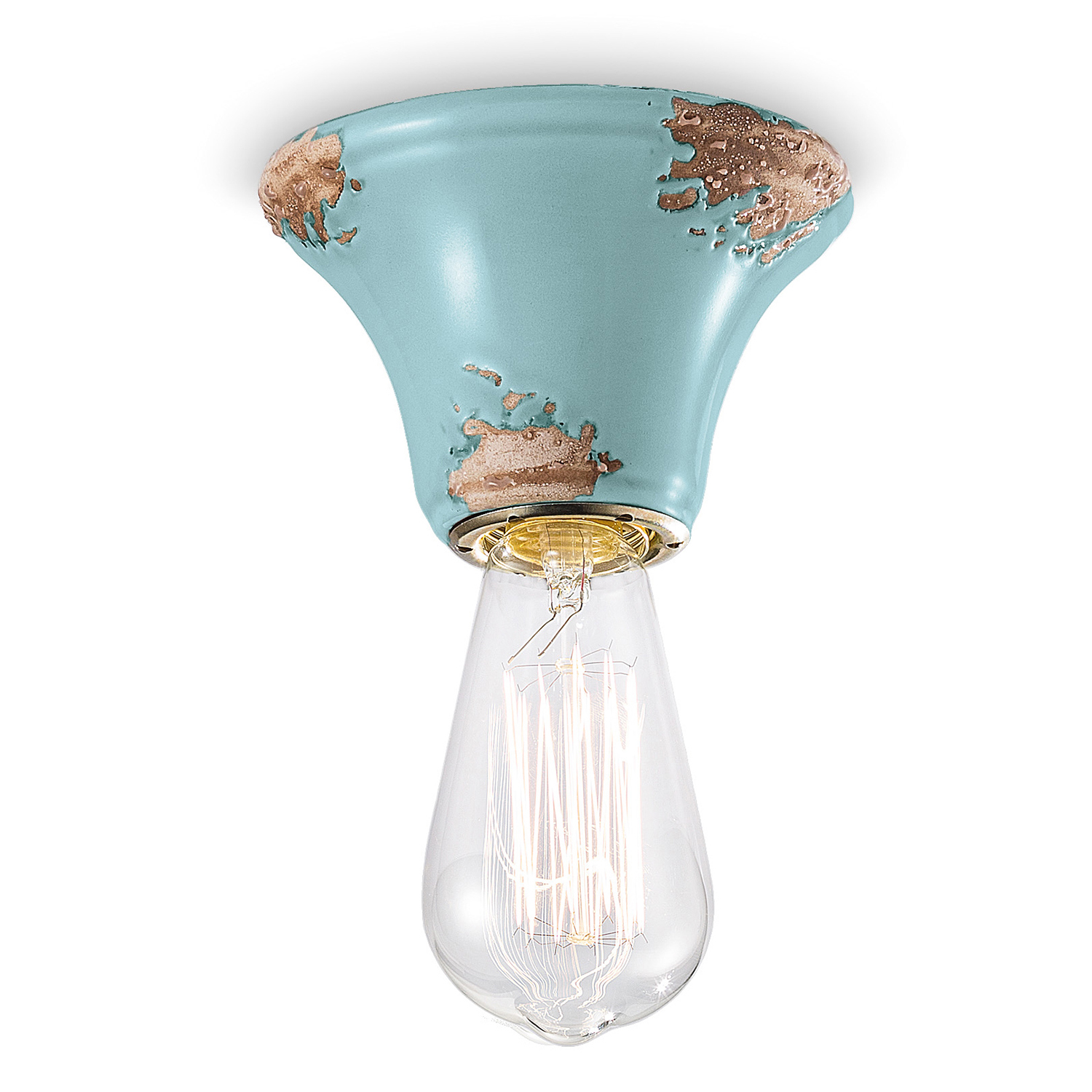 Collezione VINTAGEL'IMPRONTA DEL PASSATO PER CHI HA VOGLIA DI STUPIREPlafoniera 1 Luce diam.12,5 cm in ceramica con finitura vintage azzurro lavorata a mano da artig..