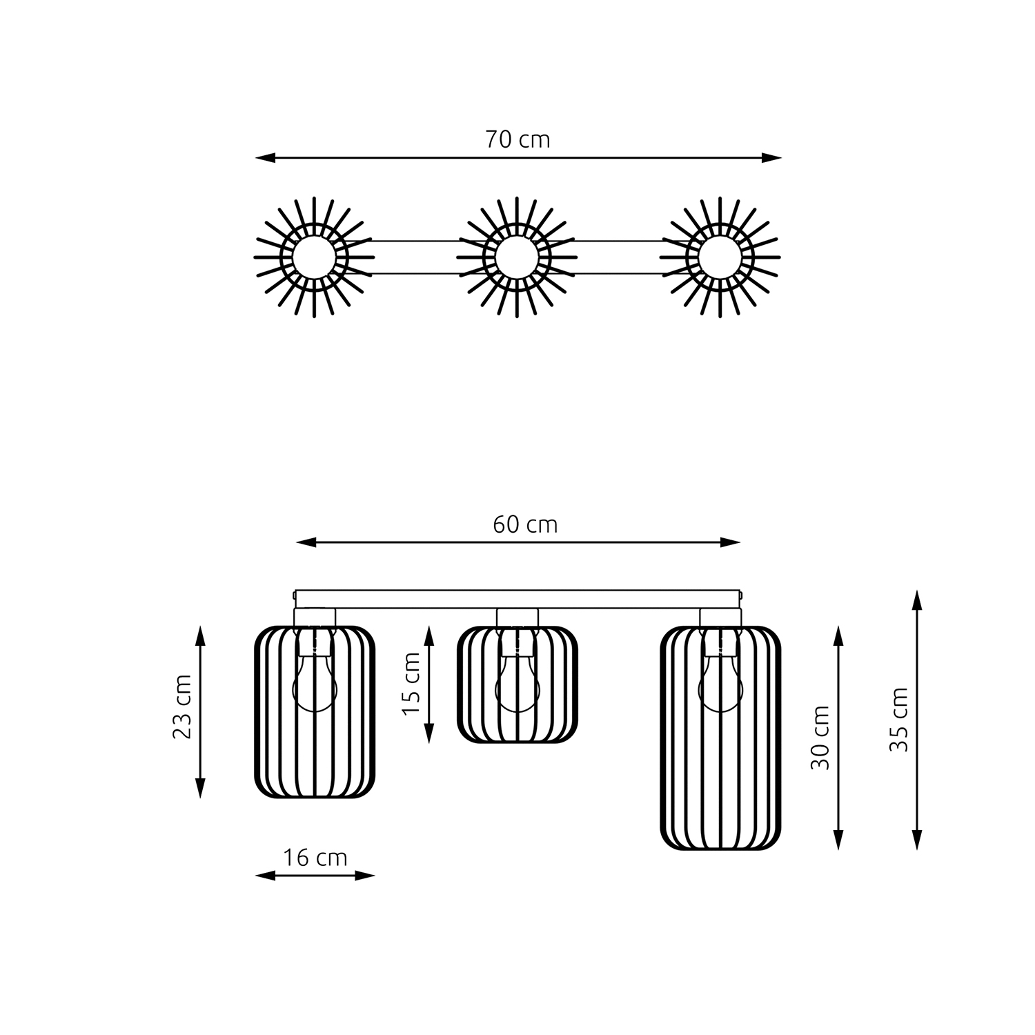 Collezione VulcanoOGNI SCELTA PARLA DEL TUO STILEPlafoniera 3 luci E27 in acciaio verniciato a polvere effetto gabbia, con barra lineare. La lampada da soffitto Vul..