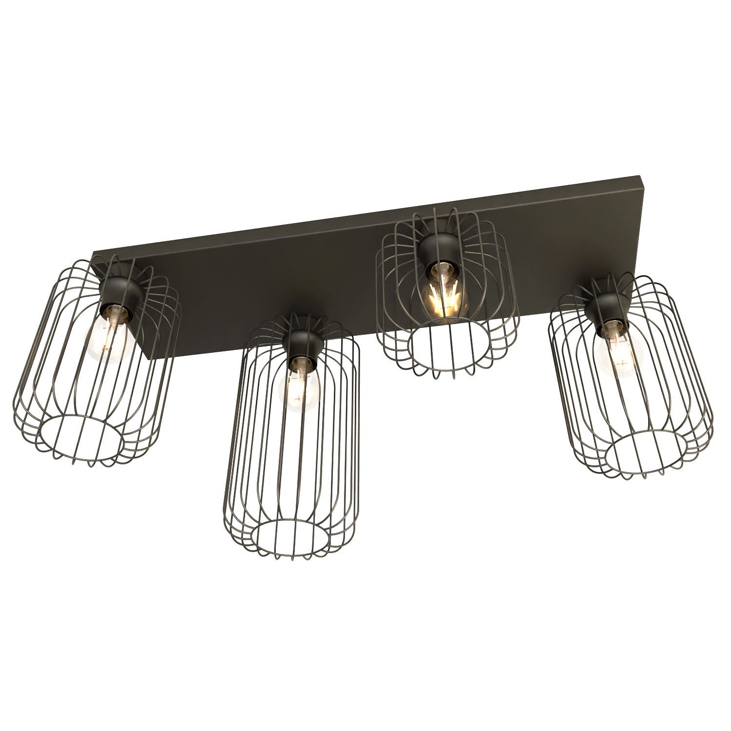 Plafoniera 4 luci E27 in acciaio verniciato a polvere effetto gabbia, con rosone rettangolare. La lampada da soffitto Vulcano è realizzata in acciaio resistente, che ne garantisce la longevità e il carattere unico. I suoi caratteristici paralumi in filo metallico conferiscono agli interni un fascino grezzo e creano affascinanti effetti di luce. È perfetto per il soggiorno, la sala da pranzo, la cucina, nonché per gli spazi commerciali come bar e ristoranti, aggiungendo un'atmosfera loft unica.