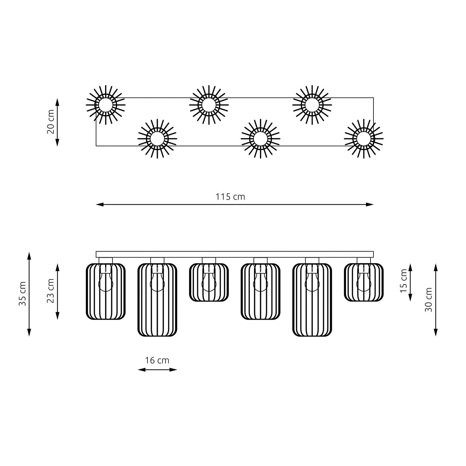 | Dimensioni | Altezza Generale=35 Cm Altezza Corpo=23/30/15/23/30/15 Cm Diametro=16 Cm Lunghezza=115 Cm Profondità=16 Cm |