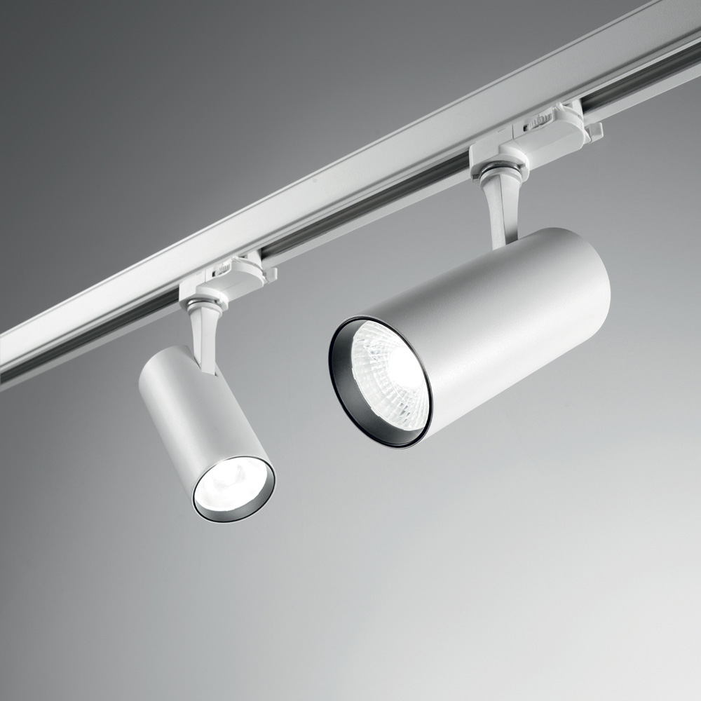 Collezione FOXPROIEZIONI DI LUCEProiettore cilindrico in alluminio estruso, adatto per installazione su binario trifase.. Verniciatura a polvere, testa girevole e or..