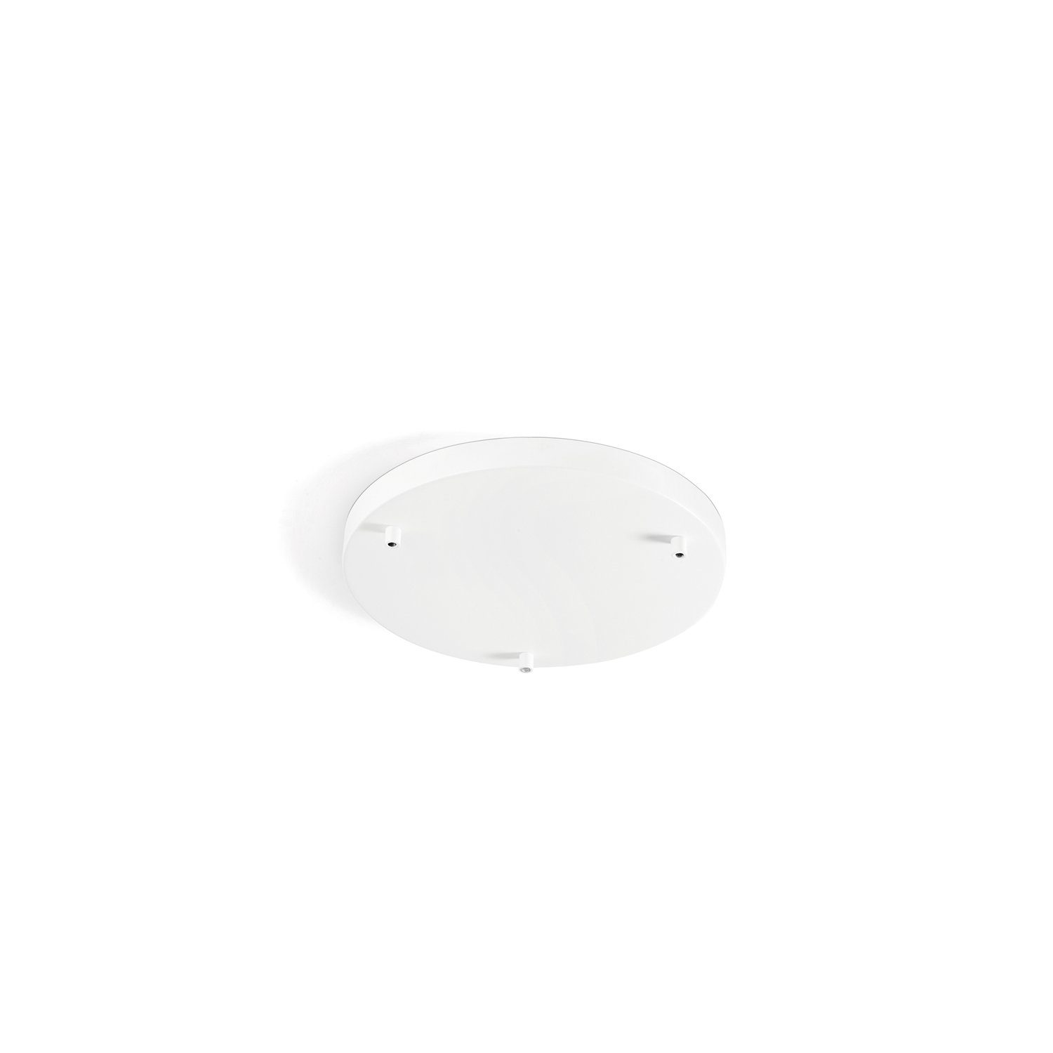 Rosone multicavo 3 fori in metallo verniciato a polvere colore bianco opaco diametro 35cm e altezza di 3cm.