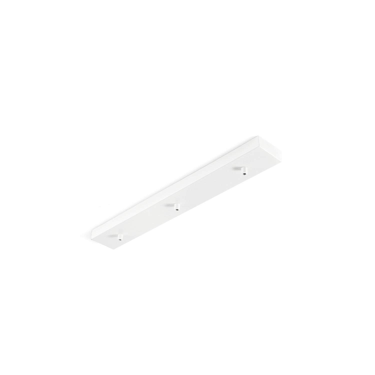 Rosone multicavo 3 fori in metallo verniciato a polvere colore bianco opaco con una lunghezza di 60cm, altezza di 3cm e larghezza di 8cm.