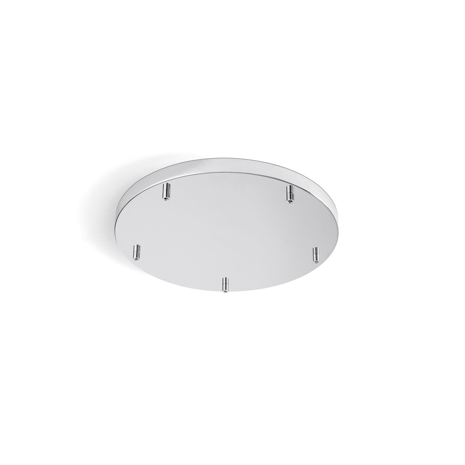 Rosone multicavo 5 fori in metallo verniciato a polvere colore cromo spazzolato diametro 45cm e altezza di 3cm.