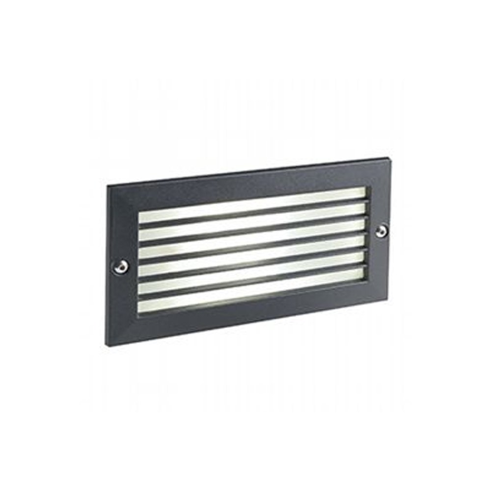 Incasso a parete in alluminio pressofuso e controscatola in termoplastico, color nero goffrato, con griglia frangiluce.. Nato per illuminare muretti, giardini e vialetti. Disegnato per ambientazioni esterne, risulta ideale quando la luce ha compiti di indicazione di passaggi pedonali, di ostacoli ambientali e di delimitazione. Illuminazione a LED 230V. Luce diretta con diffusore in vetro satinato.