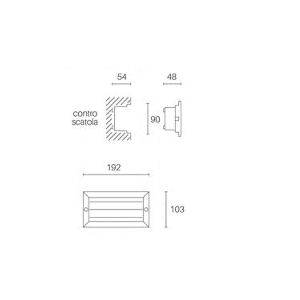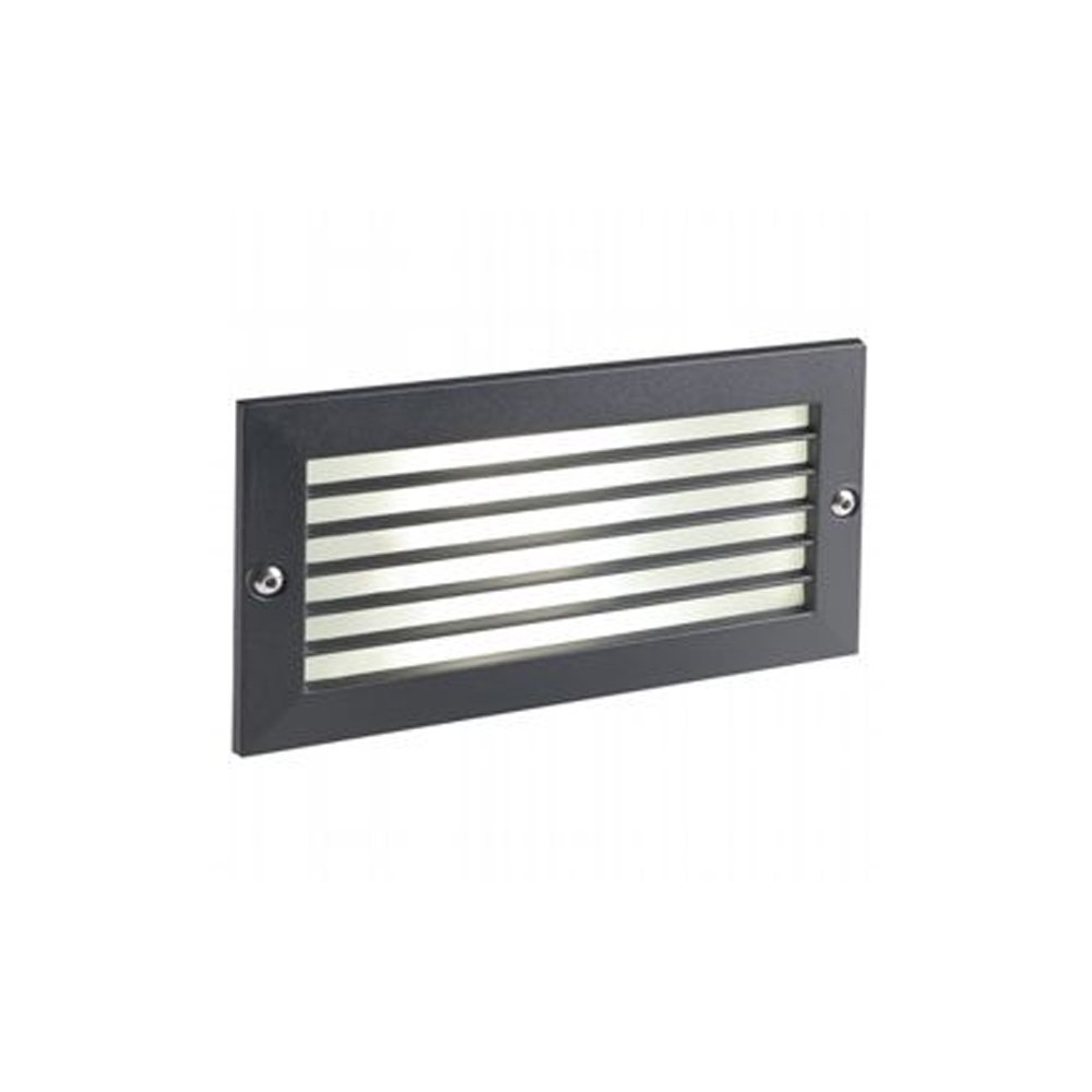 Incasso a parete in alluminio pressofuso e controscatola in termoplastico, color nero goffrato, con griglia frangiluce.. Nato per illuminare muretti, giardini e vialetti. Disegnato per ambientazioni esterne, risulta ideale quando la luce ha compiti di indicazione di passaggi pedonali, di ostacoli ambientali e di delimitazione. Illuminazione a LED 230V. Luce diretta con diffusore in vetro satinato.