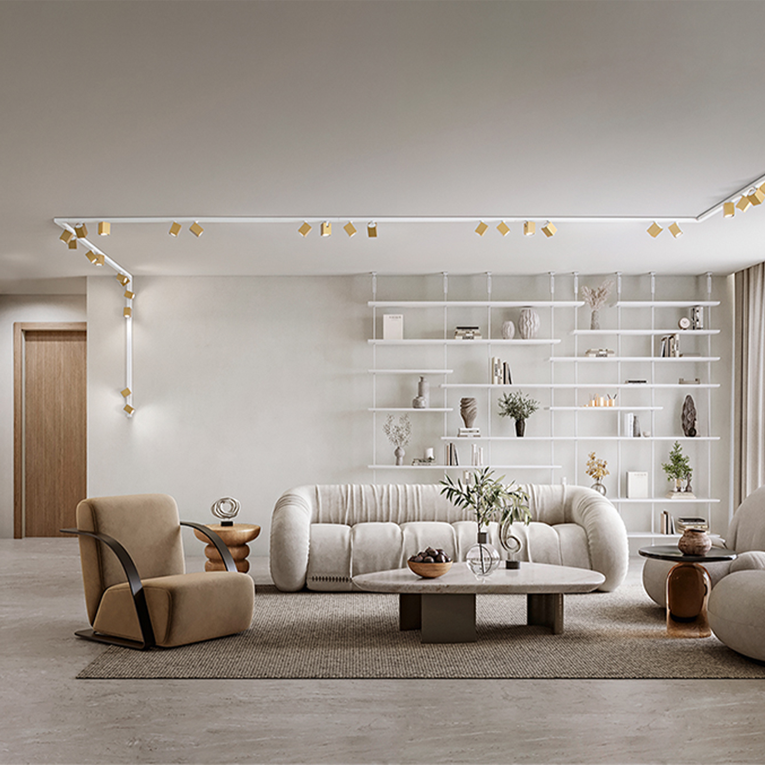 Collezione SnodoSISTEMA MODULARESistema modulare di faretti componibile e customizzabile con struttura in metallo e alluminio verniciato a polvere colore bianco opac..