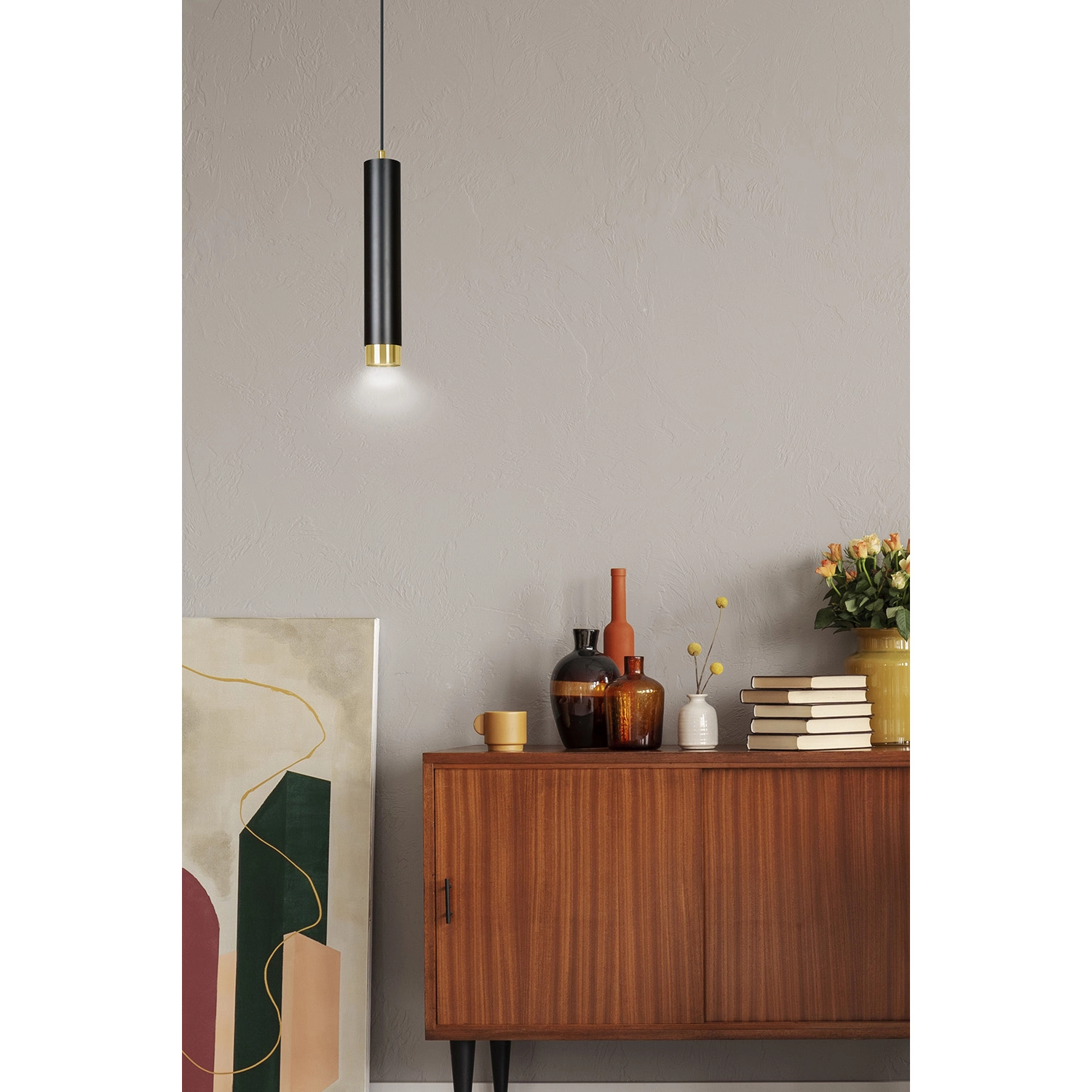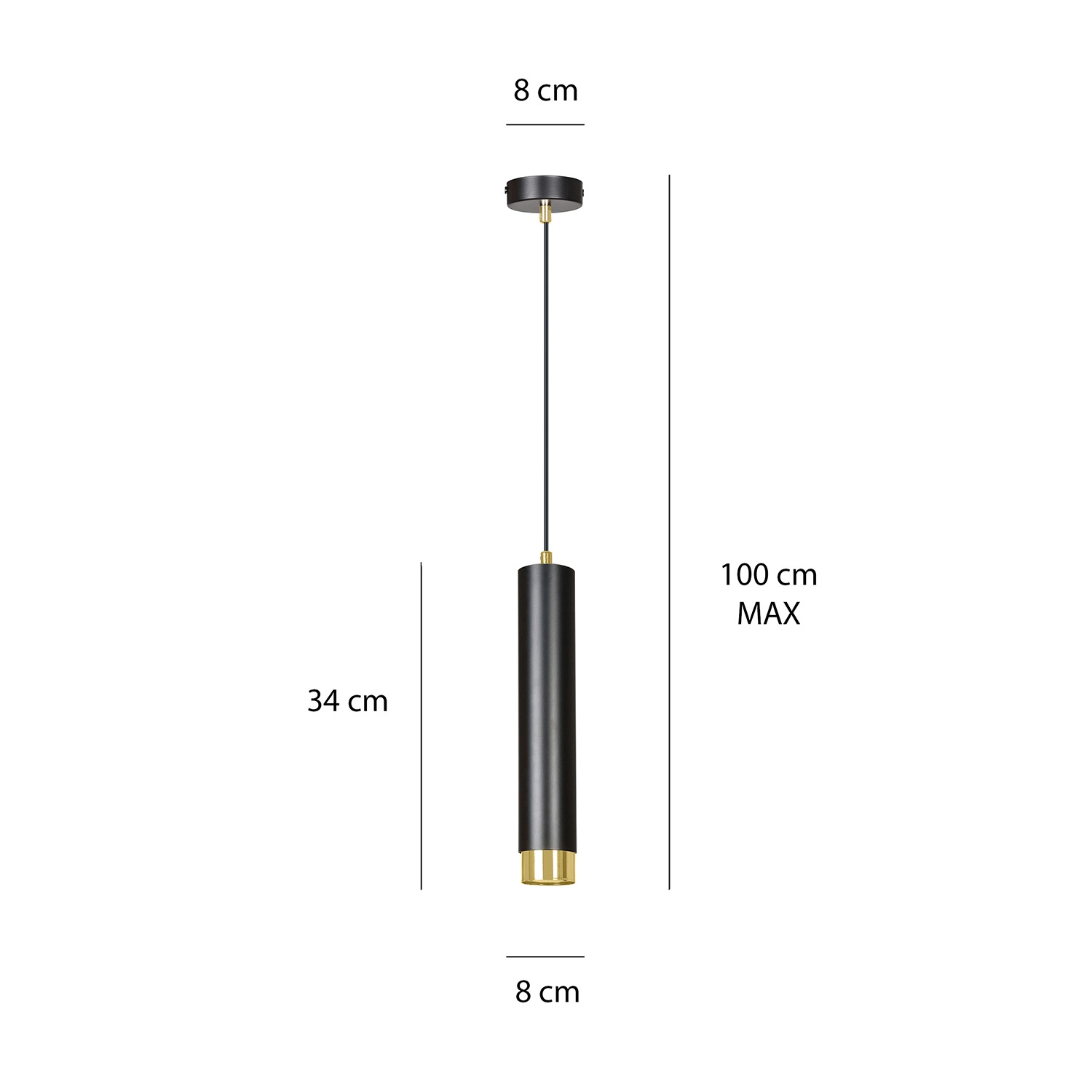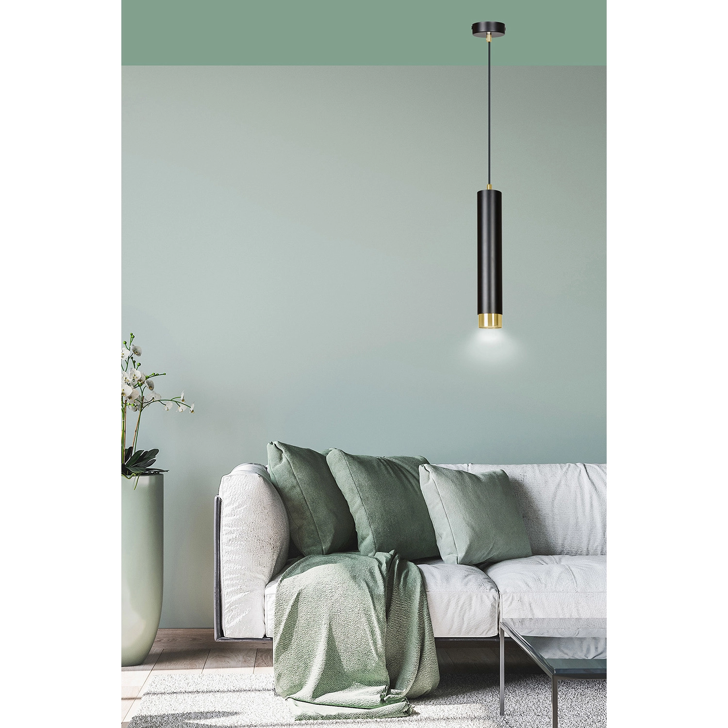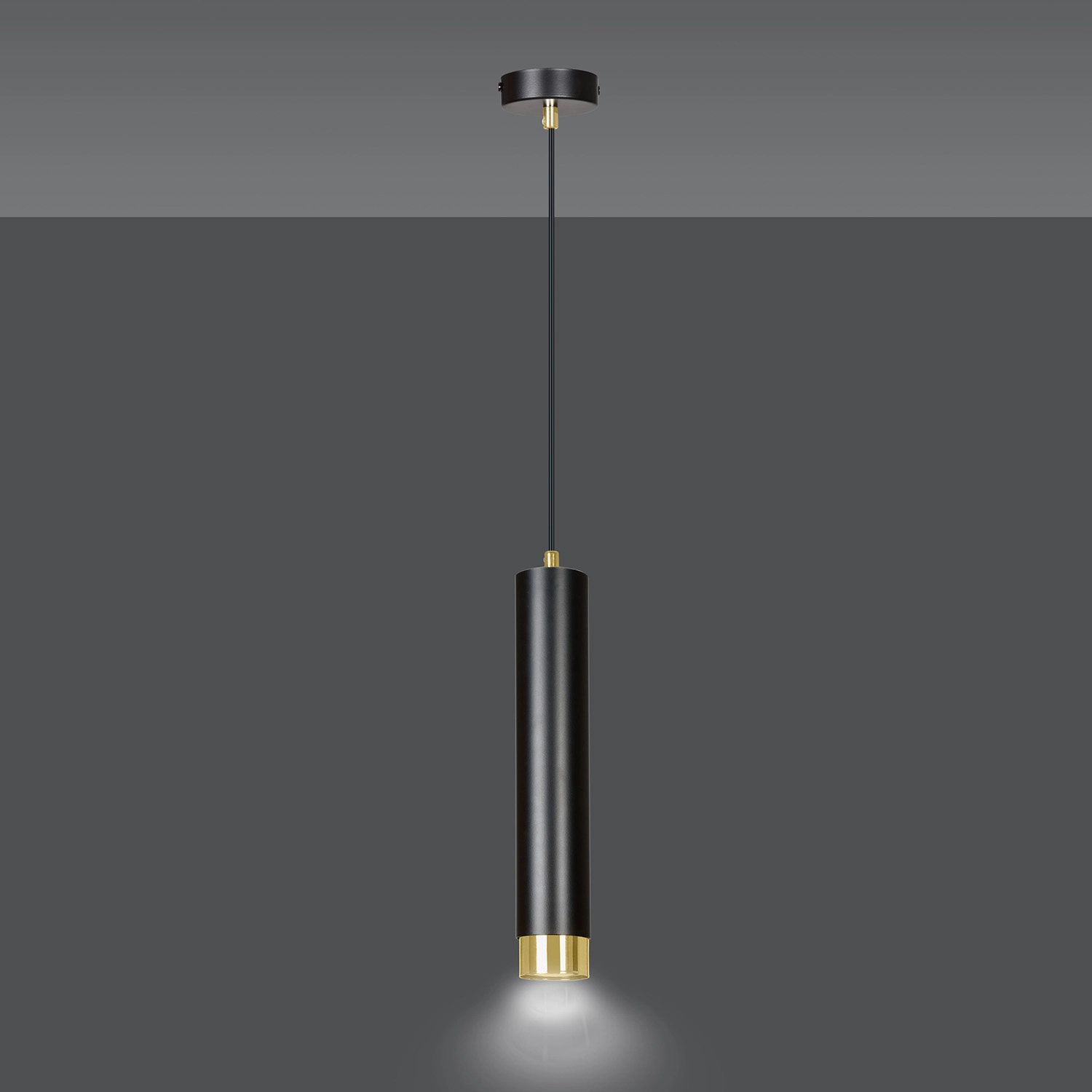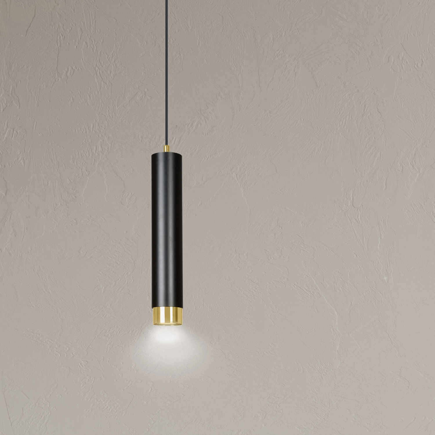 Sospensione 1 Luce Brunilde In Acciaio Nero Con Tubolare In Nero E Oro