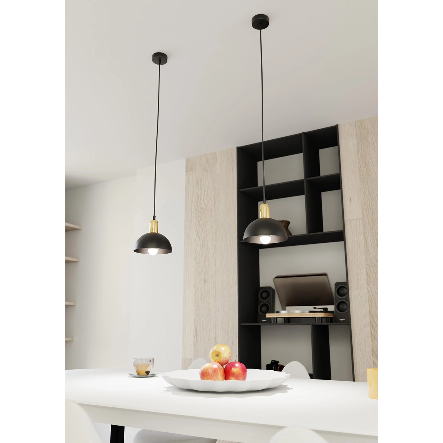 Sospensione 1 luce con base in acciaio nero e diffusore a forma di cupola in acciaio nero con dettagli oro; altezza regolabile. Si distingue per la sua estetica raffinata e versatile, perfetta per aggiungere un tocco di stile a qualsiasi ambiente, dalla zona living alla sala da pranzo, fino agli spazi commerciali come ristoranti o boutique. La struttura è rifinita in un elegante nero, che si sposa con dettagli dorati posizionati sul diffusore per un contrasto visivo sofisticato e un tocco di lusso