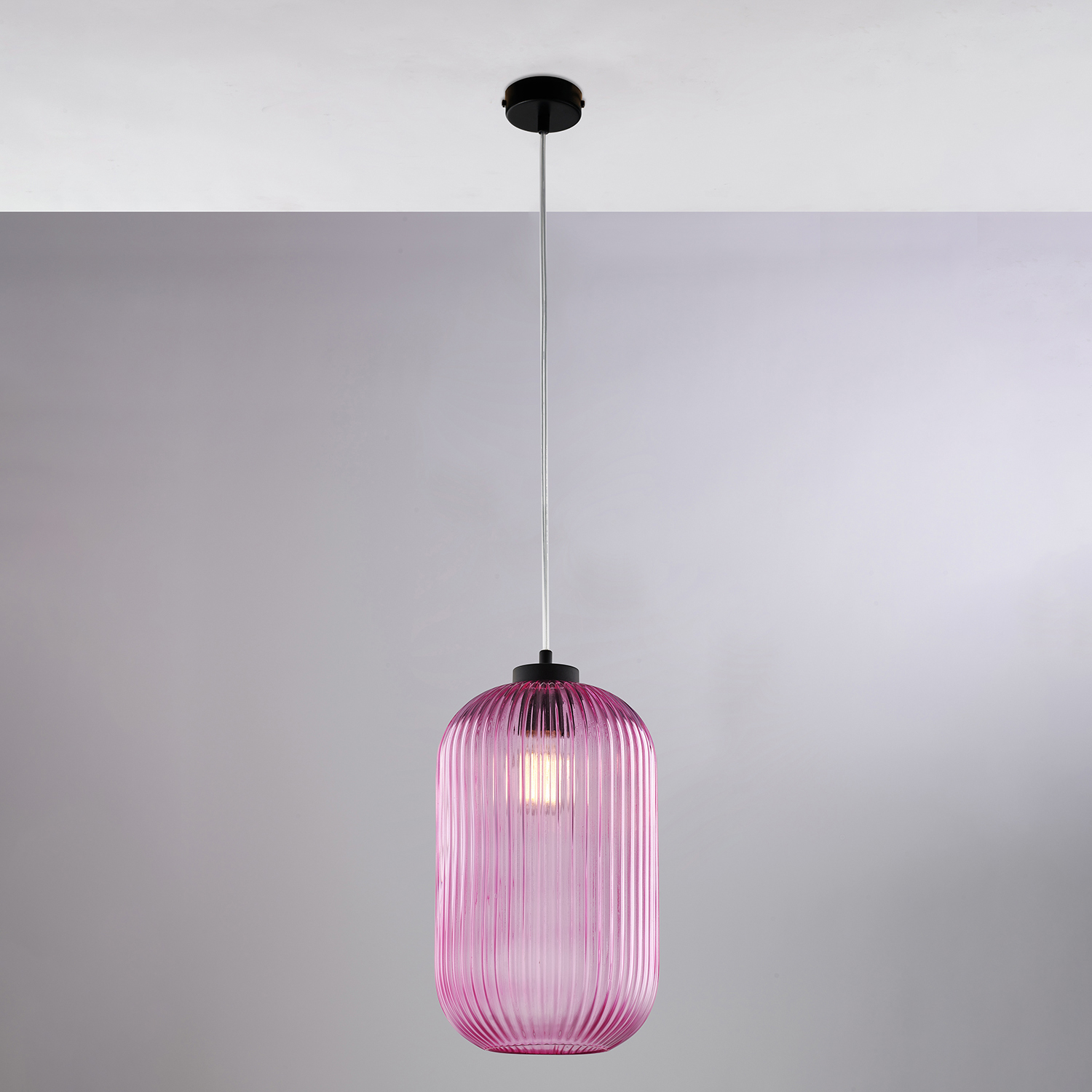 Sospensione a una luce in ferro laccato bianco con cavo elettrico regolabile. . Diffusore in vetro soffiato rosa con decoro rigatura in rilievo effetto plissè. Il vetro soffiato garantisce un'elevata qualità e una bellezza artigianale. La rigatura in rilievo con effetto plissé aggiunge texture e interesse visivo. Ogni pezzo è unico, grazie al processo di produzione manuale. Si adatta a una vasta gamma di stili di arredamento, dal moderno al classico, grazie al mix di materiali e finiture.