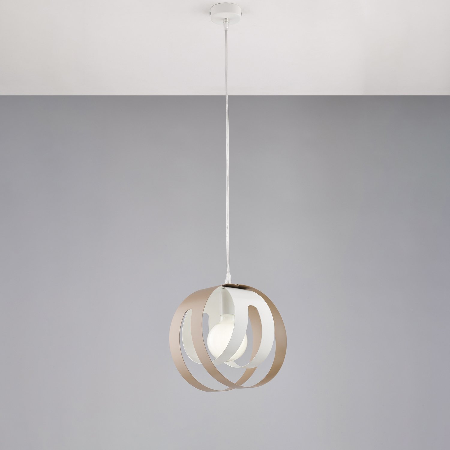 Sospensione 1 Luce Tobias Ferro Laccato Bianco E Tortora Taglio Laser