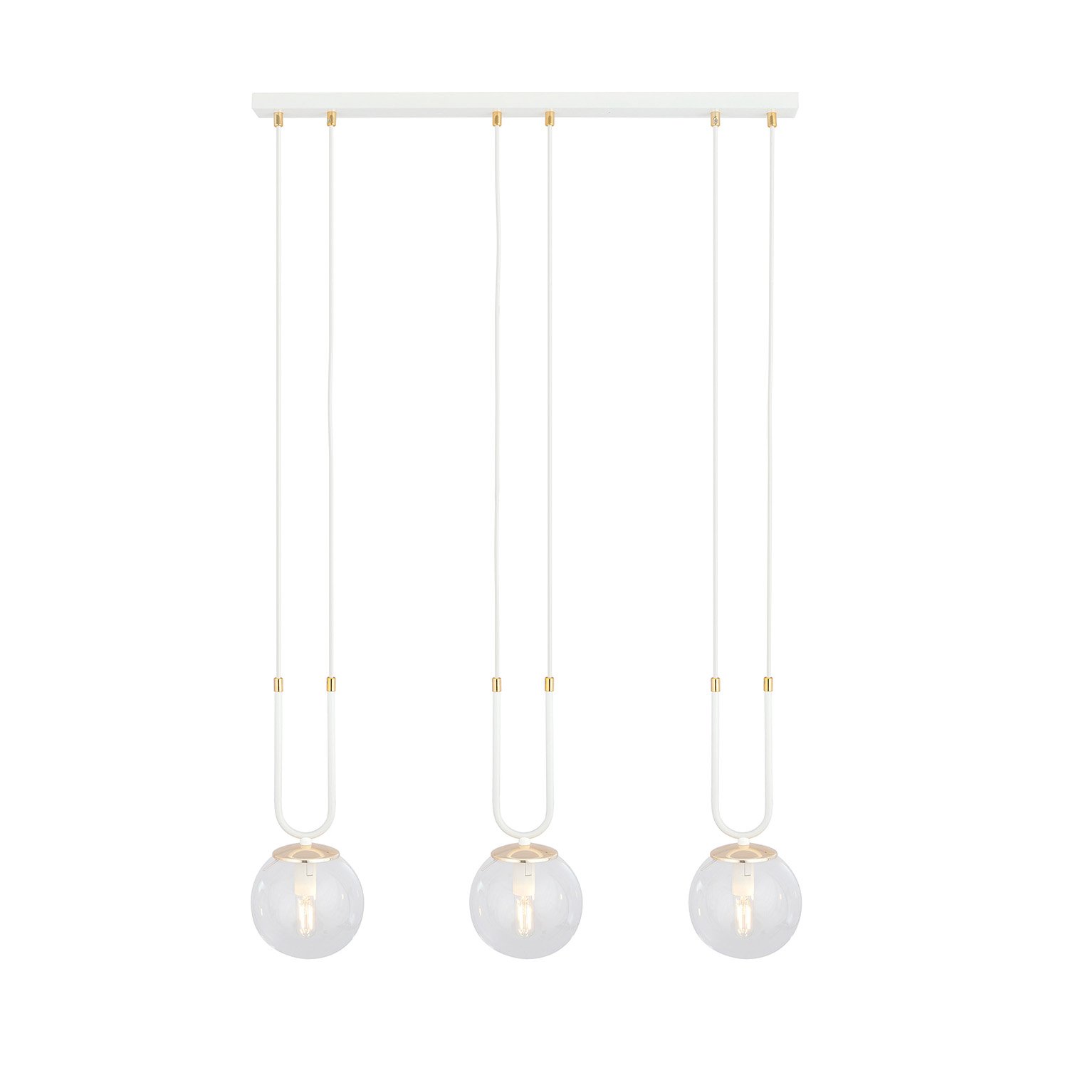 Sospensione 3 Luci Crio In Acciaio Bianco Oro E Sfera In Vetro Trasparente