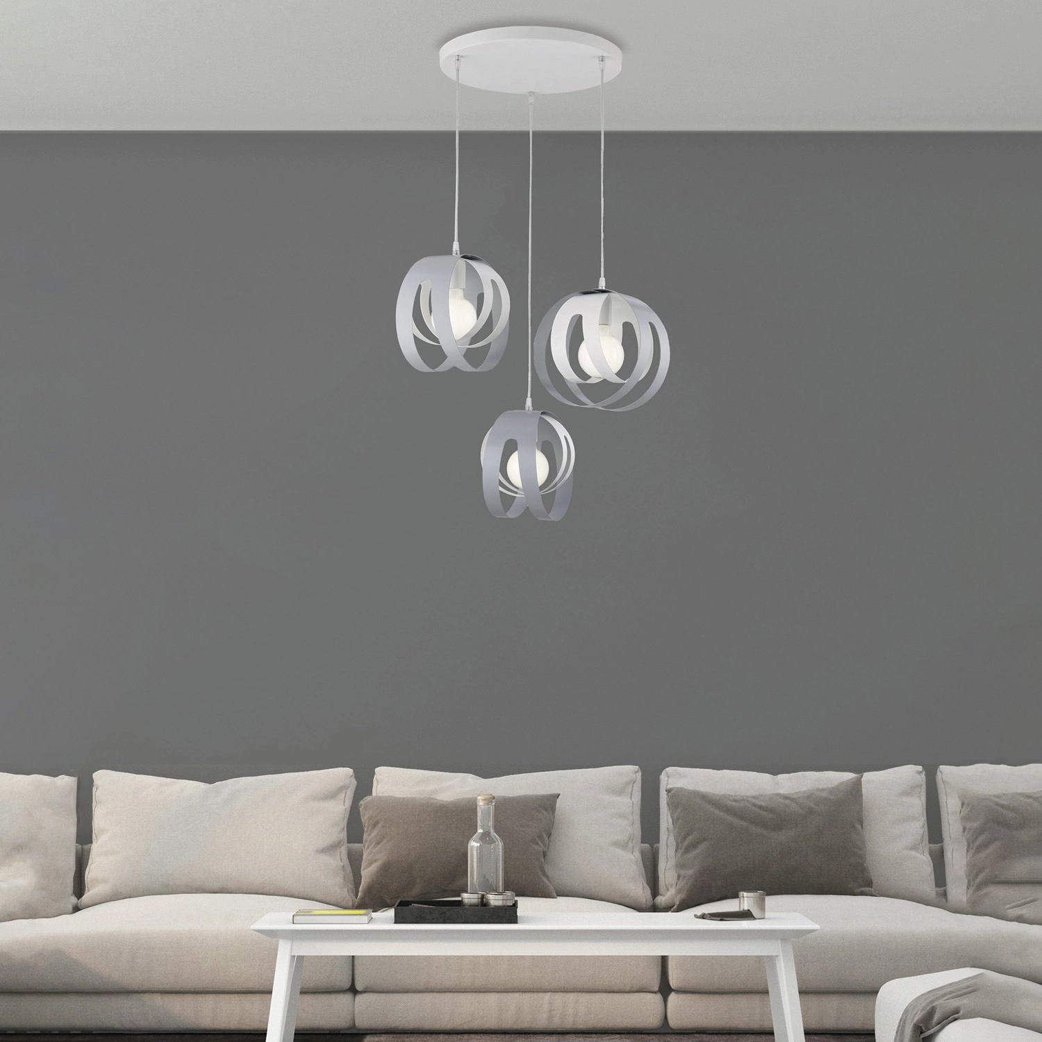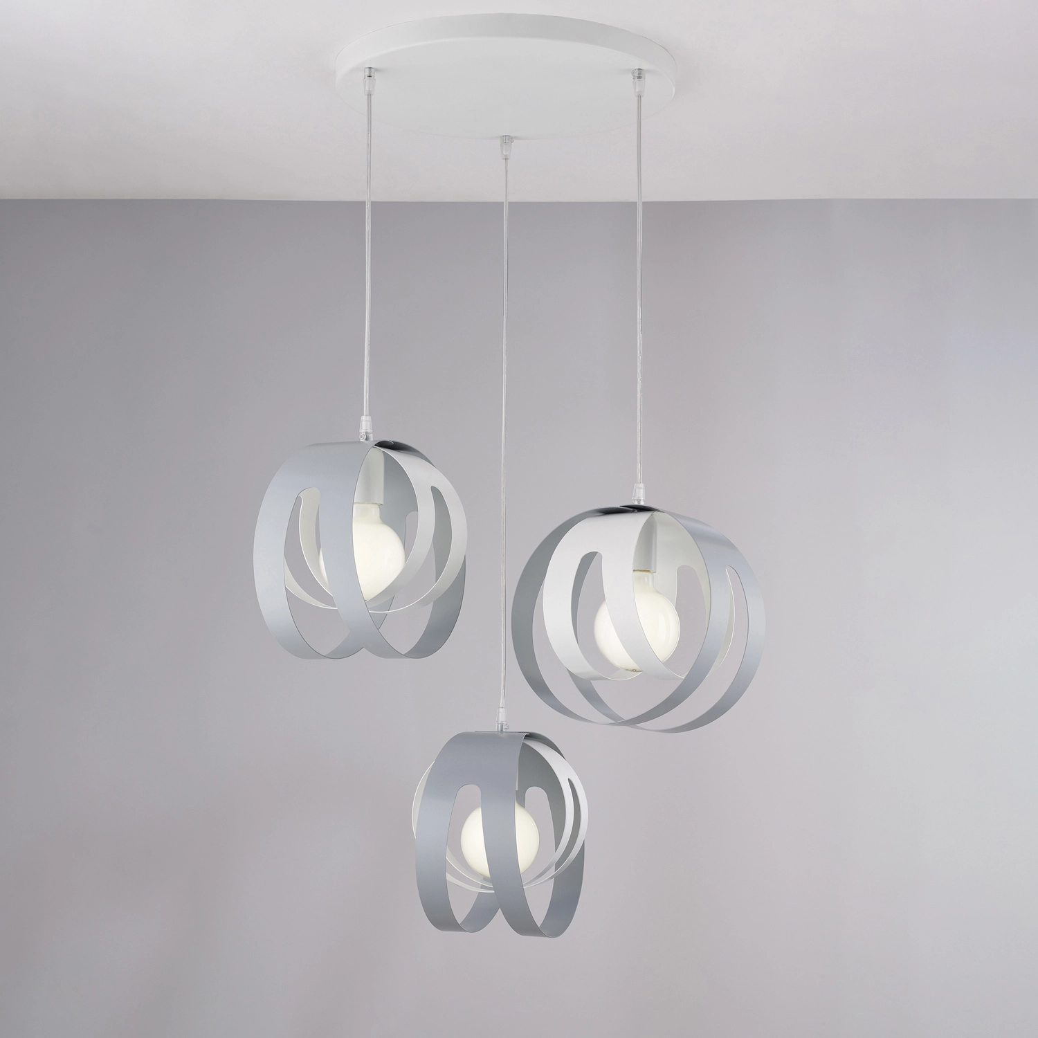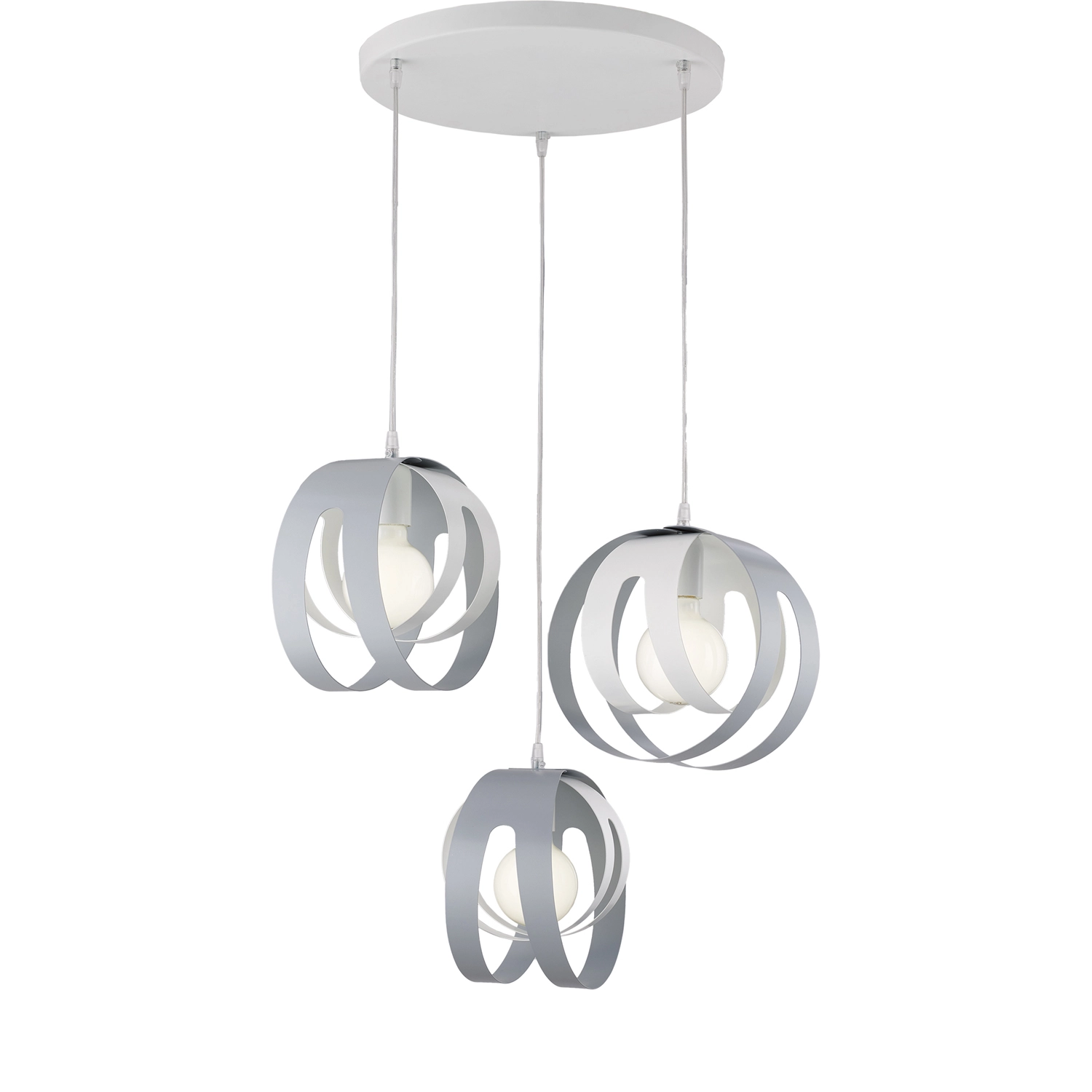 Sospensione 3 Luci Tobias Ferro Laccato Bianco E Grigio Taglio Laser