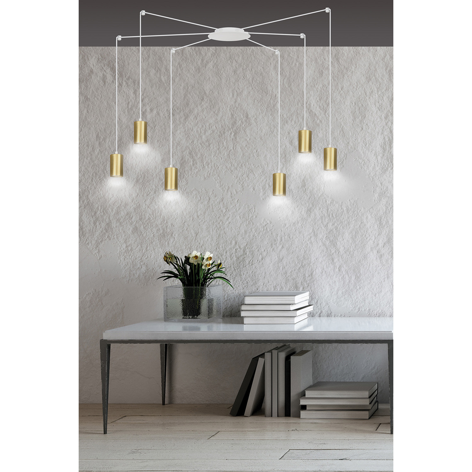 Sospensione a ragno in acciaio bianco e oro 6 luci Tracker con cavo 3 metri emibig 527/6