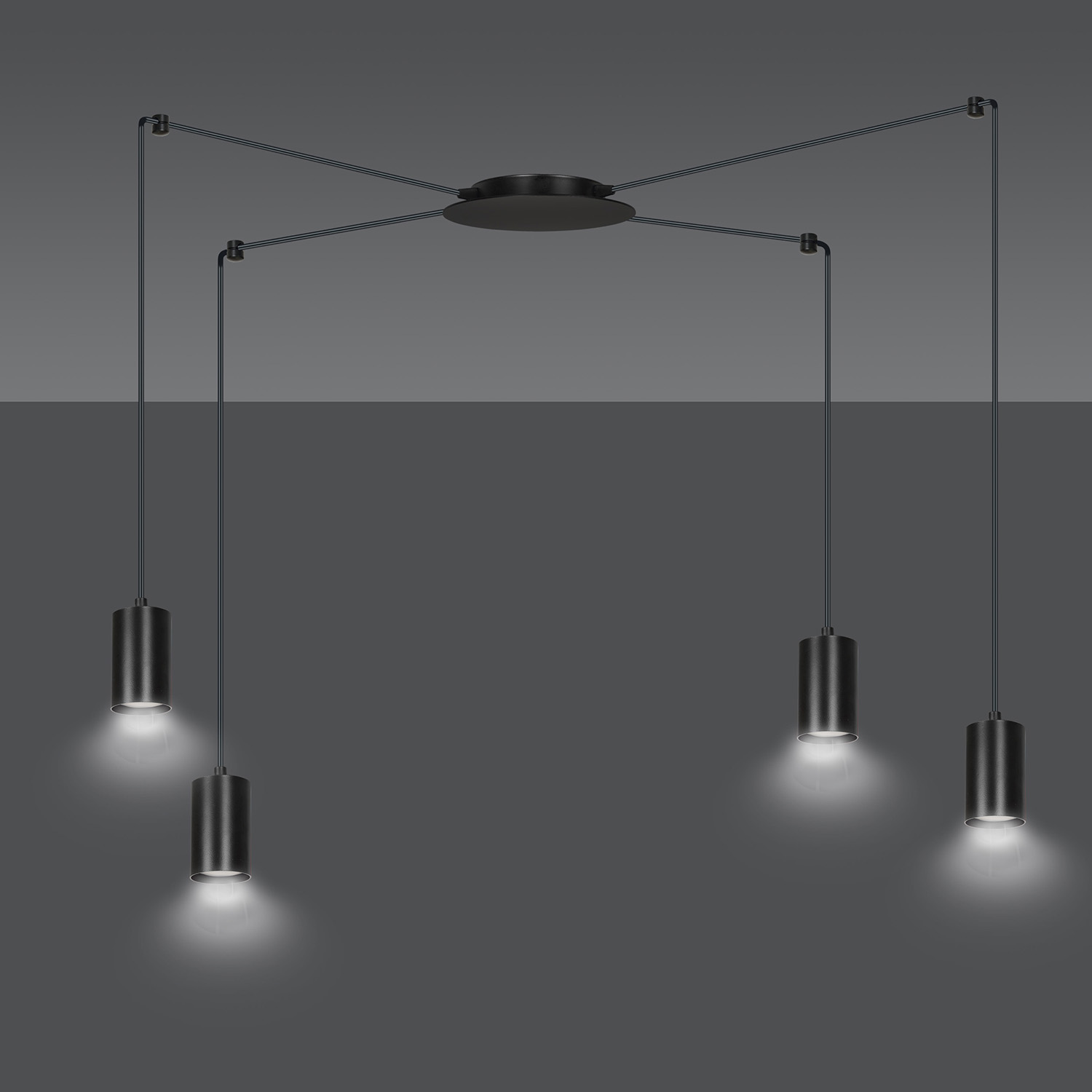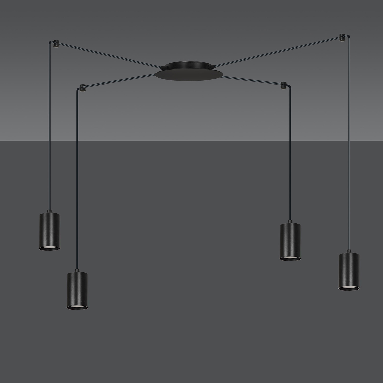 Sospensione a ragno in acciaio nero 4 luci Tracker con cavo 3 metri emibig 524/4