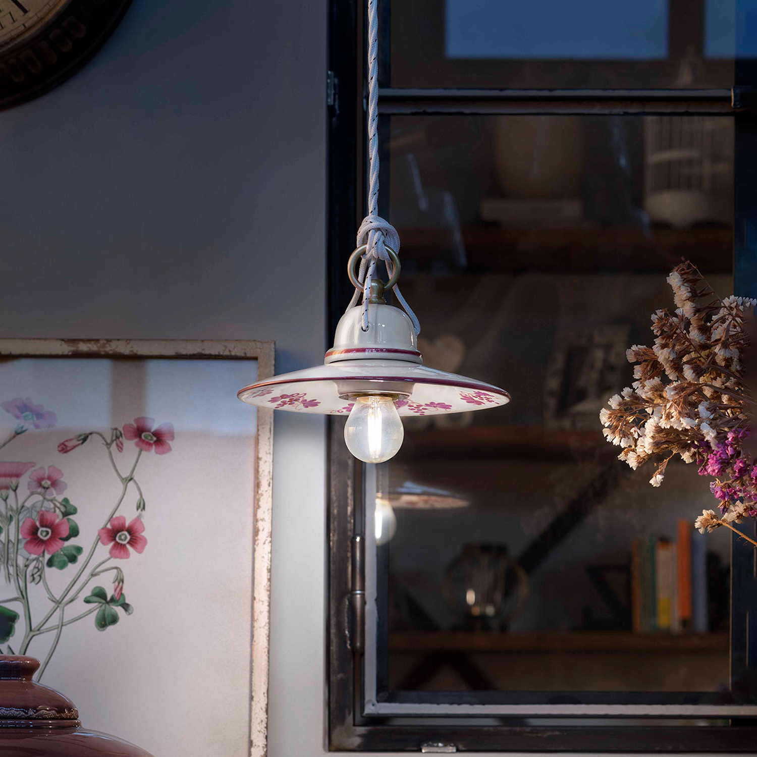 Sospensione Classico Asti Ferro E Ceramica Ottone Satinato Decorato 1 Luce E27